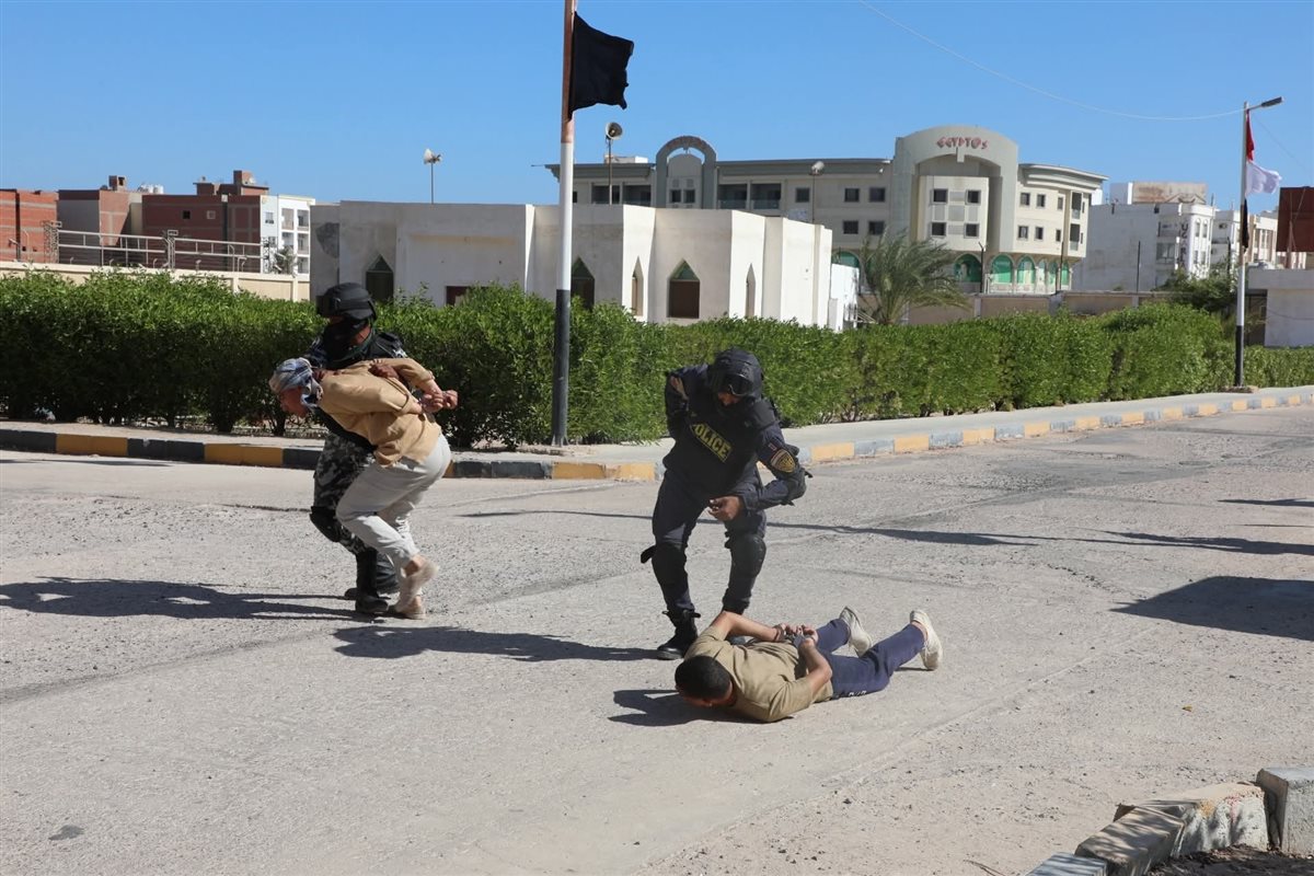 حيث تم خلال المحاكاة استعراض كيفية مواجهة هجوم على محطة الكهرباء الغازية بمنطقة مجاويش بالغردقة وكيفية التصدي والتعامل  مع عناصر الهجوم ، ودور الجهات المشاركة في الحدث.