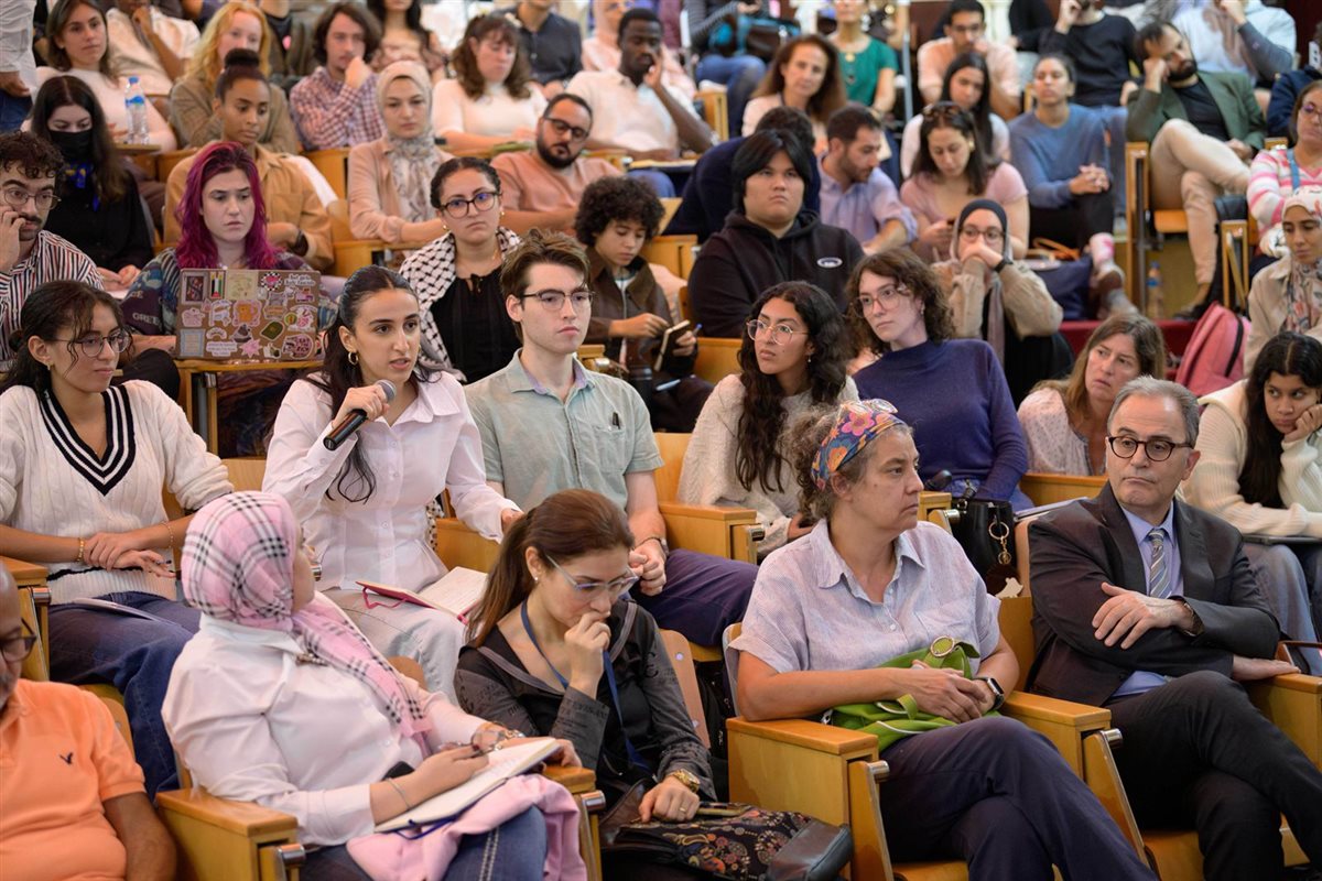 وفي نقاش مثمر مع الطلاب، تناول خالدي مجموعة واسعة من الأسئلة التي دارت حول تأثير تحول الرأي العام الأمريكي، وتداعيات الاعتراف الأوروبي الأخير بدولة فلسطين، وموثوقية وسائل التواصل الاجتماعي كمصدر أساسي لتوثيق الحرب. وأثار آخرون قضايا إقليمية أوسع، بما في ذلك تفكك العالم العربي، والتدخل الخارجي في الصراعات المحلية، وكيف تتقاطع المظالم العالمية — من السودان إلى سوريا — مع النضال الفلسطيني.