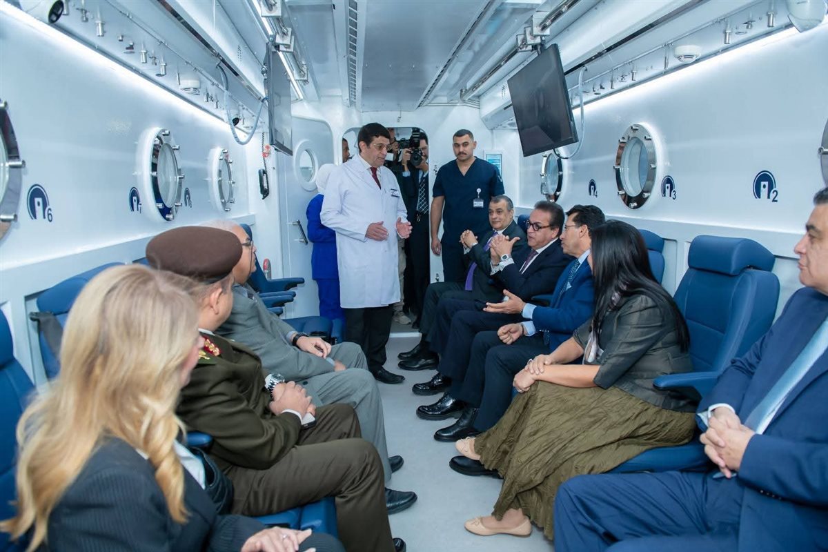 كما أعرب وزير الشباب والرياضة، عن سعادته بافتتاح الوحدتين اللتين من شأنهما تخفيف العبء عن المرضى، لافتًا إلى أن جهاز العلاج بالأكسجين عالي الضغط "الهايبر باريك" يُستخدم لتحقيق العديد من الأغراض الطبية منها التأهيل من إصابات الملاعب، وهو ما يجعله إضافة استثنائية لمجال الطب الرياضي في مصر.