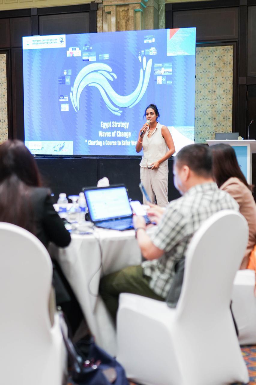 فيما استعرضت إنجي الشاذلي، مقرر المؤتمر وعضو الاتحاد الافريقي للانقاذ، عن الاتحاد المصري للغوص والانقاذ الخطط والبرامج التي يتم العمل عليها من اجل الحد من الغرق، حيث اكدت أن الإستراتيجية التي قام بوضعها بالتنسيق مع وزارة الشباب والرياضة تتوافق مع رؤية مصر 2030.