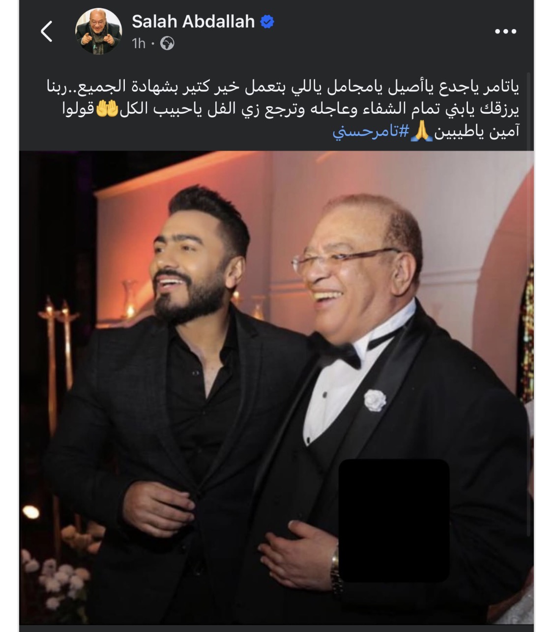 وكتب صلاح عبدالله: “ياتامر ياجدع ياأصيل يامجامل ياللي بتعمل خير كتير بشهادة الجميع، ربنا يرزقك يابني تمام الشفاء وعاجله وترجع زي الفل ياحبيب الكل، قولوا آمين ياطيبين”، في لفتة تفاعل معها الجمهور بشكل واسع.