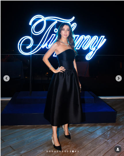 انتعلت نانسي عجرم حذاء أنيق ذا كعب عالي باللون الأسود، وتزينت بمجموعة من المجوهرات الألماسية التي منحتها إطلالة متكاملة.