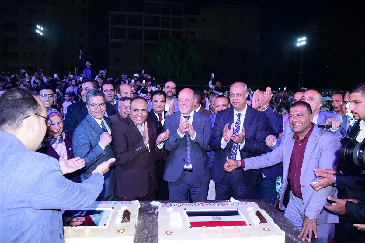 بحضور كلا من الدكتور خالد عمران نائب رئيس الجامعة لشئون البيئة وخدمة المجتمع ورئيس طلاب من أجل مصر، والدكتور حسين طه القائم بأعمال نائب رئيس الجامعة لشئون التعليم والطلاب، المحاسب اشرف القاضي امين عام الجامعة، والدكتور محمود خليل نائب رئيس طلاب من أجل مصر، الدكتور ياسر عبد الفتاح امين الجامعة المساعد واللواء طارق حافظ مدير الامن الجامعي، الدكتور محمد كمال منسق الأنشطة الطلابية الدكتور أحمد عاطف مدير رعايه الشباب المركزية وعمداء ووكلاء الكليات، ولفيف من أعضاء هيئه التدريس، والجهاز الإداري، والطلاب من مختلف الكليات، وذلك بملاعب الجامعة بالحرم الجامعي القديم.