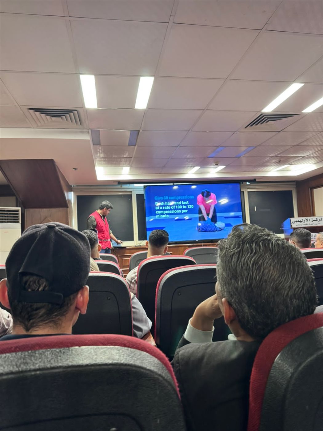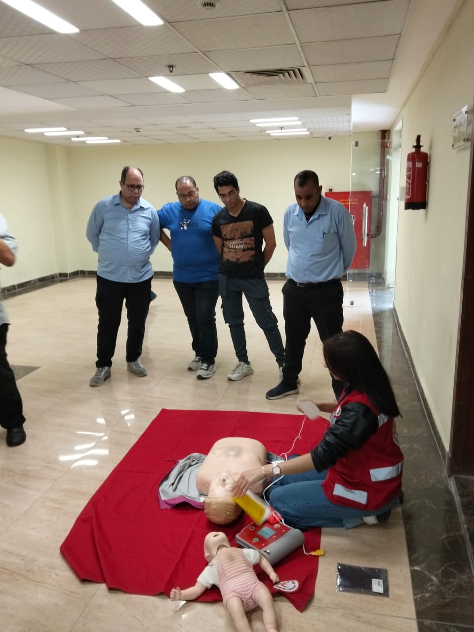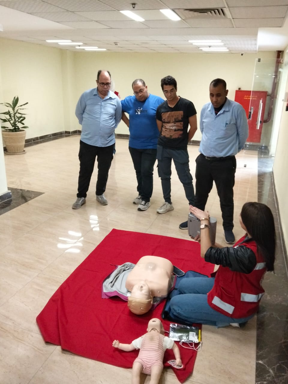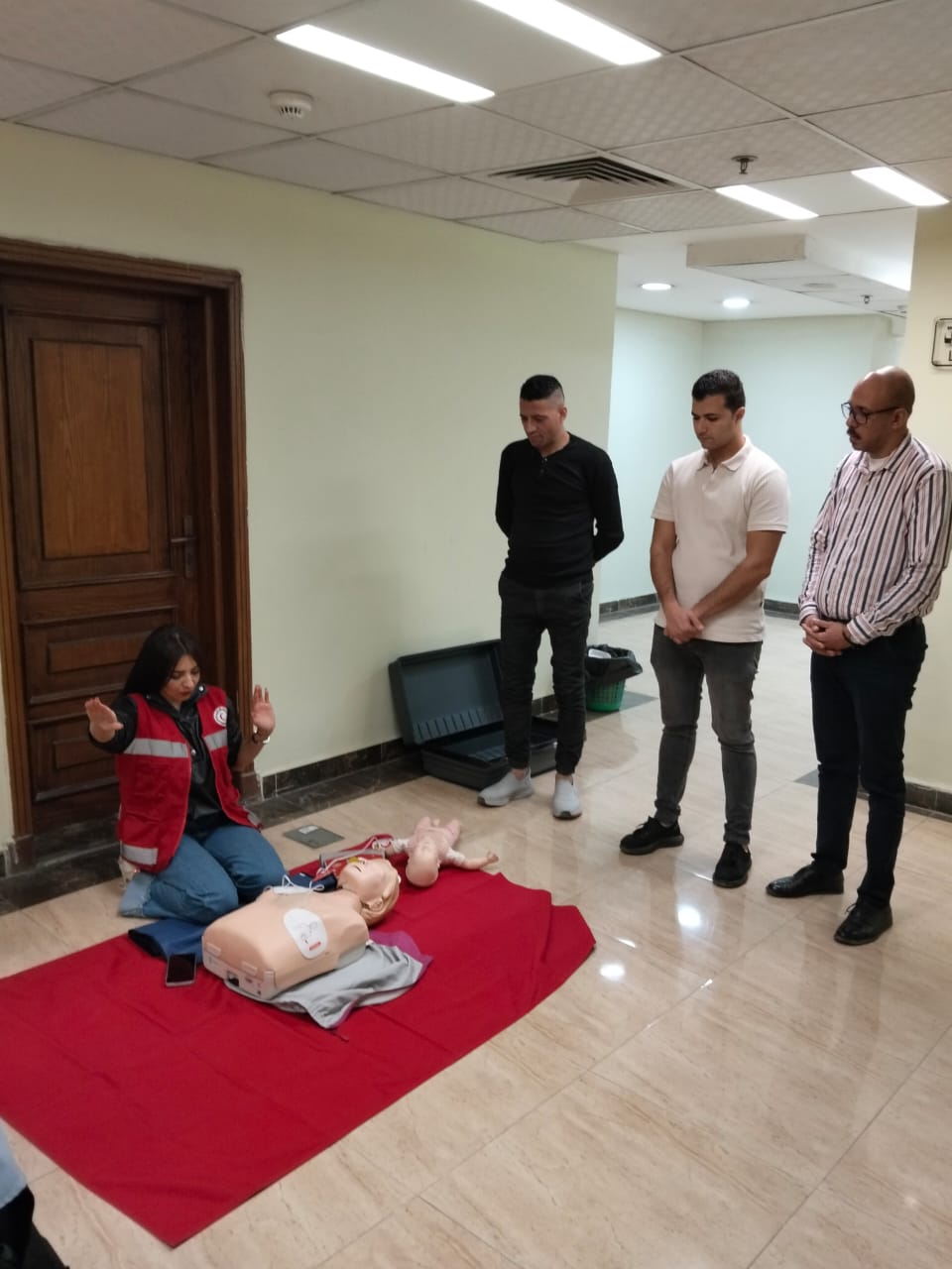 وشهد اليوم تدريب 40 من العاملين بالمركز الأوليمبي وفندق تيوليب على مهارات الإنعاش القلبي الرئوي (CPR) واستخدام أجهزة إزالة الرجفان الآلي (AED) والإسعافات الأولية، على أن تستكمل البرامج التدريبية يومي الجمعة والسبت 1 و2 ديسمبر لبقية العاملين.