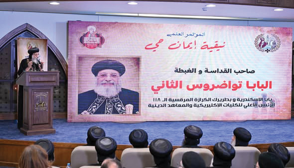 إلى ذلك شهد البابا تواضروس الثانى انعقاد المؤتمر العلمى تحت عنوان «نيقية… إيمان حي»، مساء أول أمس، بالكاتدرائية المرقسية بالعباسية، بحضور عدد من الآباء الأساقفة والكهنة، والرهبان، والراهبات، وعدد من أساتذة الكليات والمعاهد اللاهوتية.