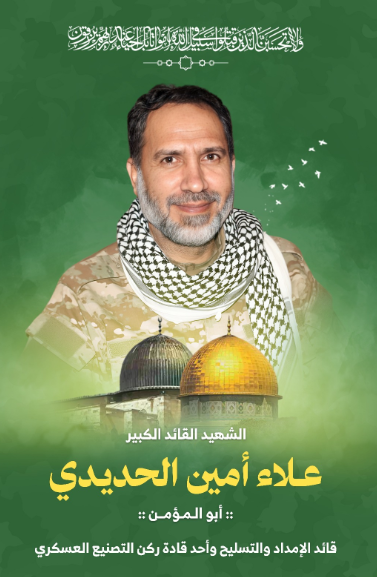 وكانت حماس أعلنت في وقت سابق عن استشهاد علاء الحديدي قائد الإمداد والتسليح وأحد قادة ركن التصنيع العسكري.