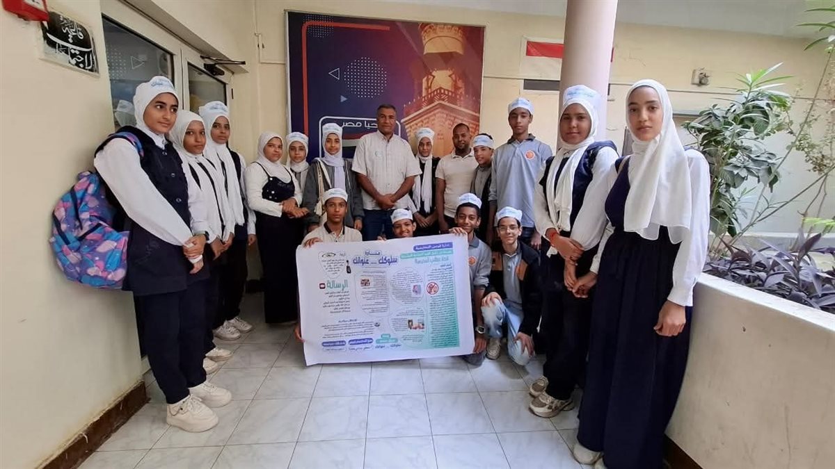 وتحدث فريق الطلابي عن أهداف المبادرة والتى تهدف لبناء سلوك منضبط بين الطلاب، وينصب اهتمامها علي قضايا النظافة العامة ، والتنمر، ومحاربة الألفاظ غير اللائقة، والانضباط المدرسي.