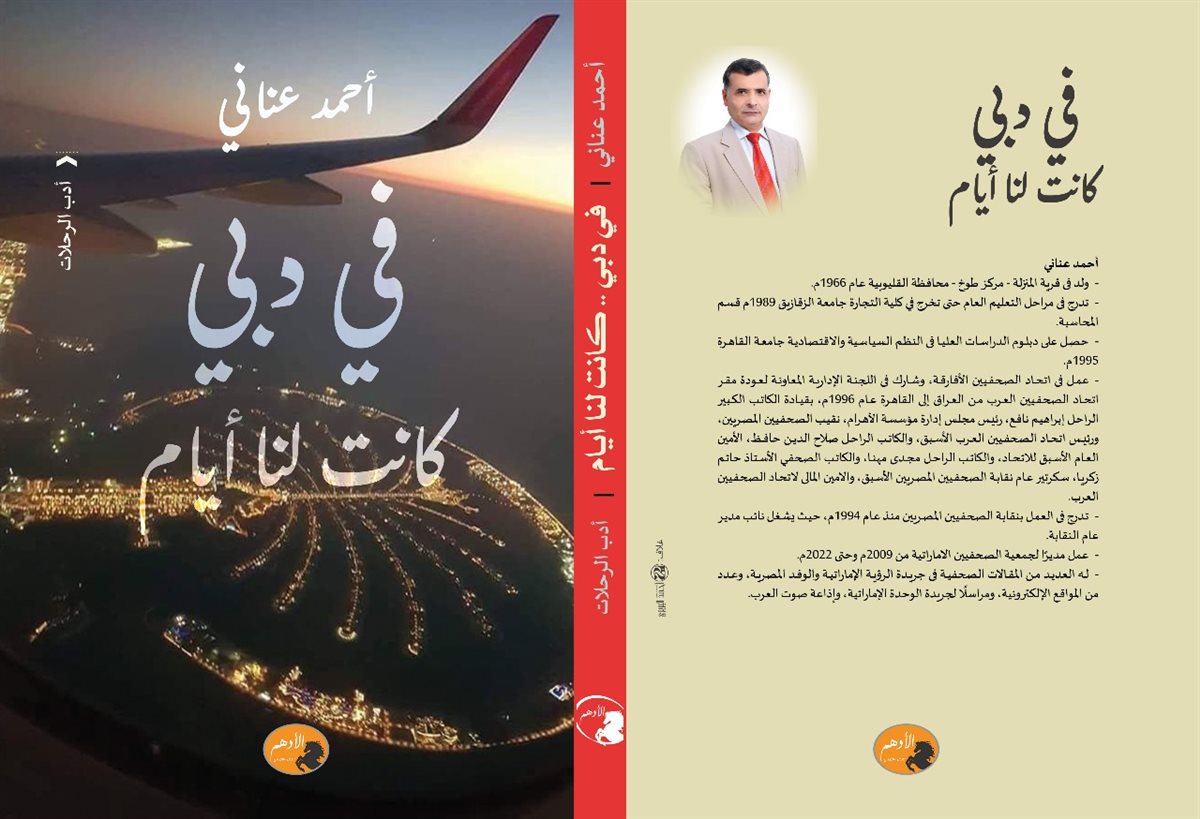صدر مؤخراً عن دار الأدهم للنشر والتوزيع كتاب بعنوان "فى دبي .. كانت لنا أيام" للكاتب أحمد عنانى، الذى عاصر فترة من الزمن فى الإمارات من 2009 وحتى 2022 مديرا لجمعية الصحفيين الاماراتية وبحكم عمله، انتقل الى كافة مناطق الدولة من دبي دانة الدنيا التى عاش فيها هذه الفترة إلى أبوظبي التى يوجد فيها فرع لجمعية الصحفيين الإماراتية إلى الشارقة العاصمة الثقافية للإمارات إلى عجمان التى تزهو على الخليج العربي و إلى أم القيوين قمة الهدوء والراحة النفسية، إلى الفجيرة السياحة والجمال فى الطبيعة إلى رأس الخيمة الطبيعة والمنطقة الواعدة بالإستثمار الصناعى.