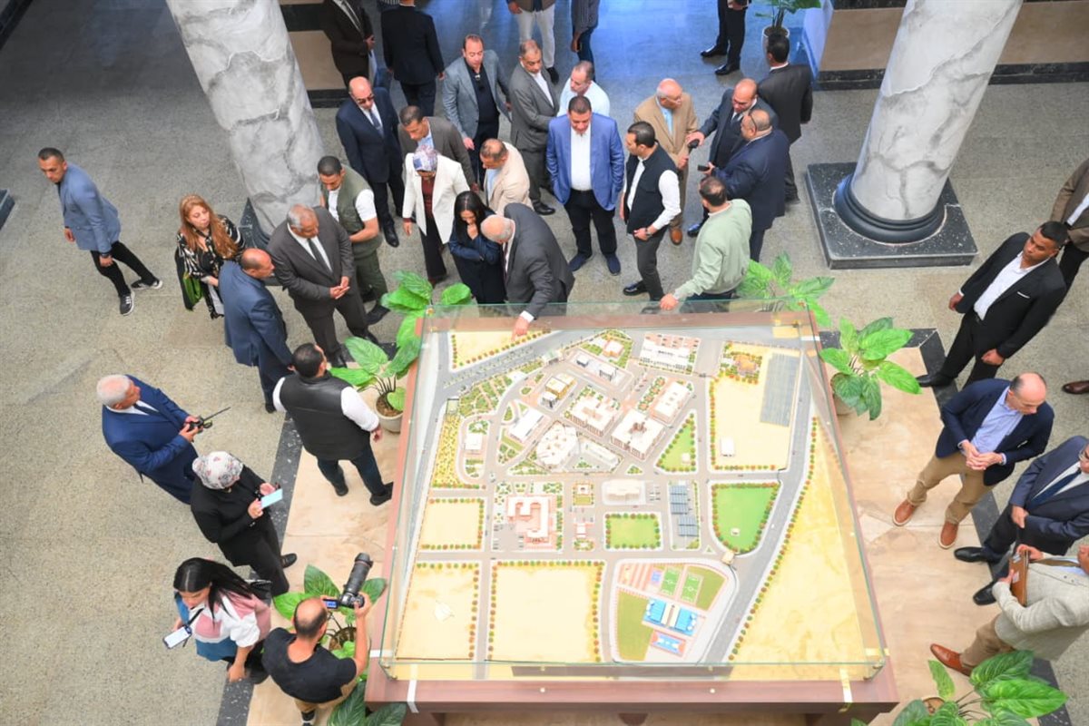 وأطلعها اللواء محمد الزملوط محافظ الوادي الجديد على مكونات المبنى، الذي يضم ديوان المحافظة، مبنى المديريات، ومبنى التعامل مع الجمهور، ومبنى جهات حكومية متعددة، ومبنى إداريا لديوان عام المحافظة، ومولا تجاريا، ومبنى صندوق استصلاح الأراضي، ومحطة طاقة شمسية، ومحطة معالجة صرف صحي، ومحطة تنقية مياه شرب، وبئر مياه شرب، وصالة متعددة الأغراض، ومسرح، وخيمة بدوية VIP كبار زوار، وملاعب رياضية، ونقطة مطافي، ونقطة إسعاف، وخزانات حريق، وبوابات وأسوار المجمع، بالإضافة لأعمال شبكات المرافق؛ وشبكات صرف صحي، وشبكات مياه الشرب، وكابلات كهرباء المباني والطاقة، والطرق.