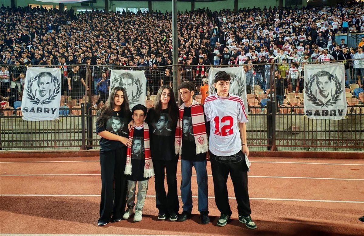 وفي نفس الوقت تواجد عدد من نجوم الزمالك القدامى باستاد القاهرة رفقة أبناء النجم الراحل وهم يرتدون قمصانًا تحمل صورة محمد صبري.
