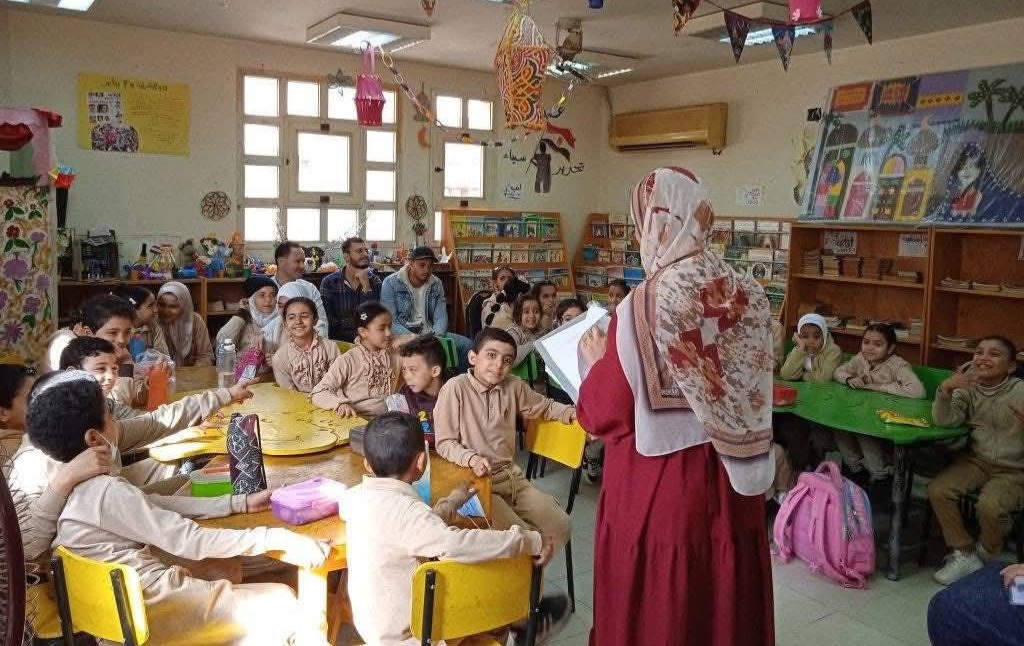 وقدمت هناء حسن نشاطًا تربويًا بعنوان “قيم أخلاقية”، ثم جاءت ورشة الحكي عن قصة “كن صديقي بحق” للكاتب محمد فرج قلب اللوز، وقدمتها رضا محمد عبد الوهاب أمينة المكتبة.