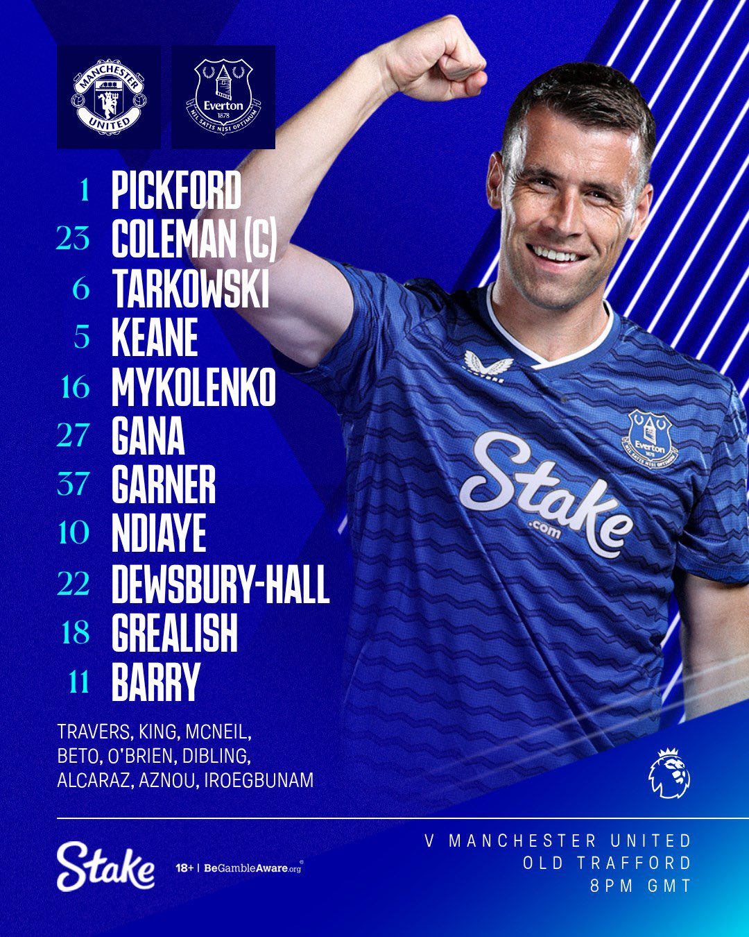 أعلن الجهازان الفنيان لفريقَي مانشستر يونايتد وإيفرتون التشكيل الرسمي لمباراتهما المرتقبة، والتي تُقام ضمن منافسات الدوري الإنجليزي الممتاز.
