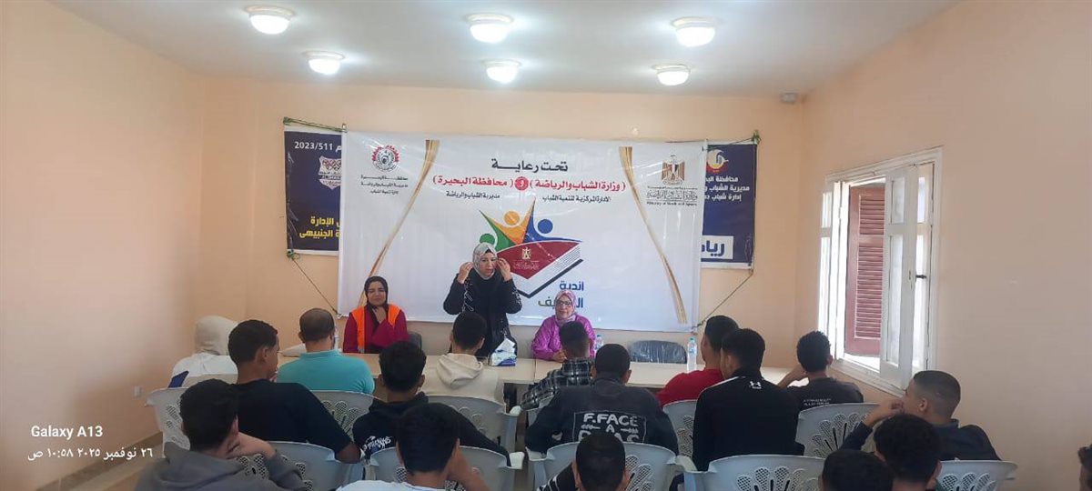 نظمت إدارة تنمية الشباب بمديرية الشباب والرياضة بمحافظة البحيرة، اليوم الأربعاء الموافق 26 نوفمبر 2025، ندوة تثقيفية بعنوان "مخاطر الإدمان وخطورة التبغ" بمركز شباب الشوكة بدمنهور. تأتي هذه المبادرة في إطار تنفيذ خطة نشاط نادي التثقيف والمجتمع لشهر نوفمبر، وتهدف إلى رفع وعي الشباب والفتيات بأهمية الوقاية من المخاطر الصحية والاجتماعية المرتبطة بالإدمان والتدخين.