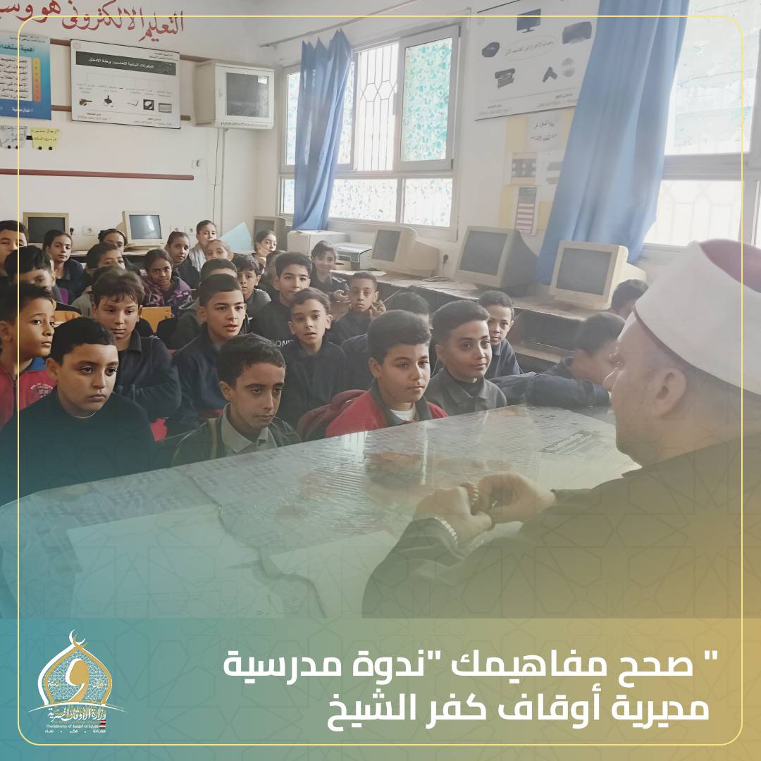 نظّمت إدارة أوقاف فوه،  اليوم الأربعاء ، ندوة تثقيفية موسّعة بمدرسة الإمام الشافعي الابتدائية، ضمن فعاليات مبادرة «صحّح مفاهيمك» التي تتبناها وزارة الأوقاف بهدف نشر الفكر الوسطي وتعزيز الوعي السلوكي لدى النشء.