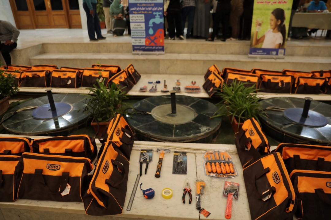 ويأتي هذا التحرك دعما لرفع مهارات الكوادر الفنية وتعزيز ثقافة ترشيد استهلاك المياه داخل مؤسسات المحافظة، وتم توزيع الحقائب على سبعين متدربا بعد انتهاء فترة التدريب التي شملت تنفيذ مهام اصلاحات خفيفة وإجراءات صيانة اساسية للمنشآت الحكومية.