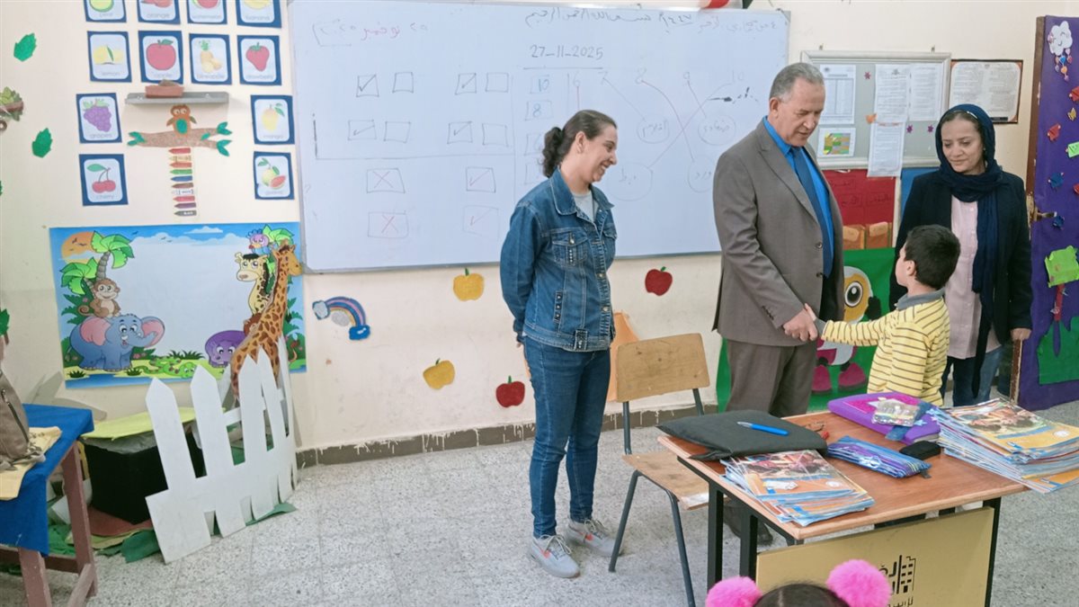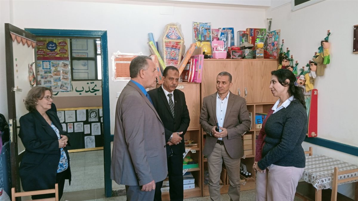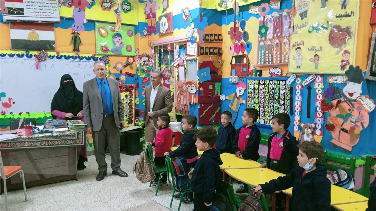 ثم توجه وكيل الوزارة إلى مدرسة درية الحسينى الابتدائية المشتركة التي تضم 18 فصل دراسى، حيث تابع سير الدراسة بفصول رياض الأطفال وأشاد بمستوى الأطفال والتزامهم بالحضور، كما راقب بعض الحصص الدراسية للمرحلة الابتدائية واطمأن على مستوى الطلاب وتفعيل حجرات الأنشطة وغرفة المصادر الخاصة ب 23 طالب.