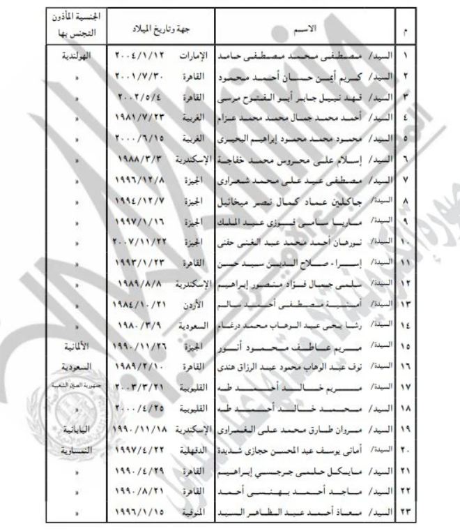 ونص القرار الذي حمل رقم 1966 لسنة 2025، على الإذن لـ23 مواطنا بالتجنس بجنسيات أجنبية وعدم الاحتفاظ بالجنسية المصرية.