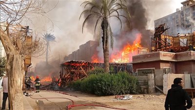وتواصل قوات الحماية المدنية محاصرة النيران لمنع امتدادها إلى مخازن قريبة والعقارات المجاورة للوكيشن التصوير.