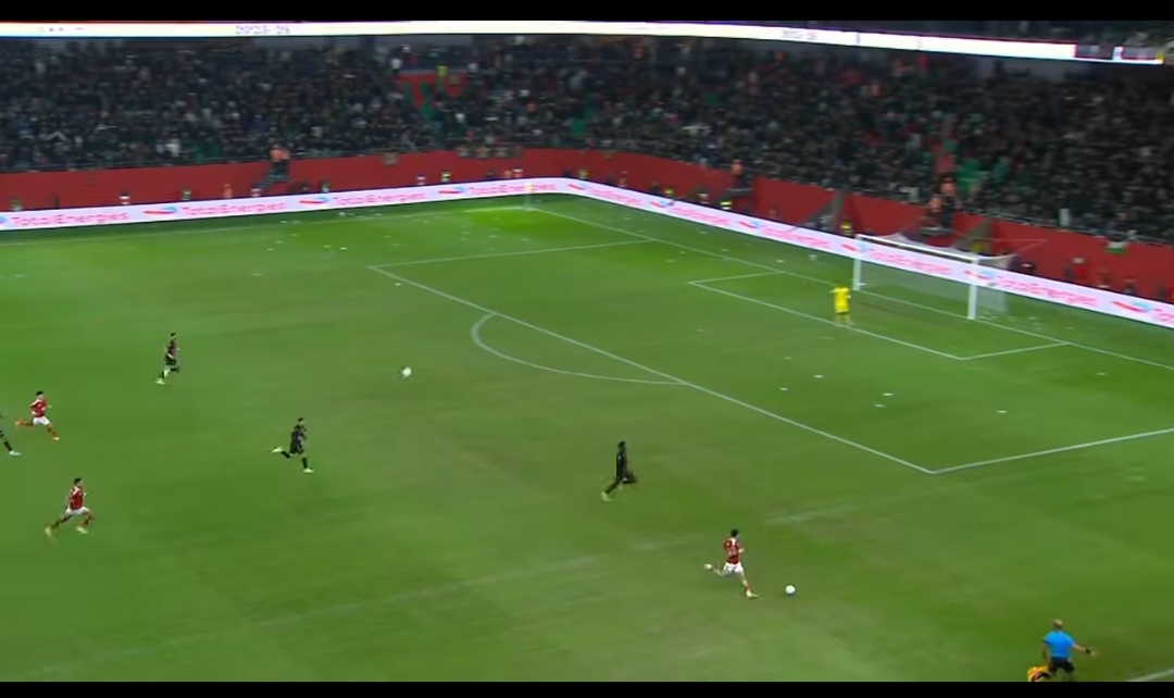خلال هجمة مرتدة لصالح النادي الأهلي، تصل الكرة إلى زيزو، الذي يجري بها سريعا لكن أحد حاملي الكرات يحدف كرة أخرى داخل الملعب، والملفت عند إخراجها من أحد لاعبي الجيش الملكي، عاود إعادتها أحد حاملي الكرات مجددا للملعب.