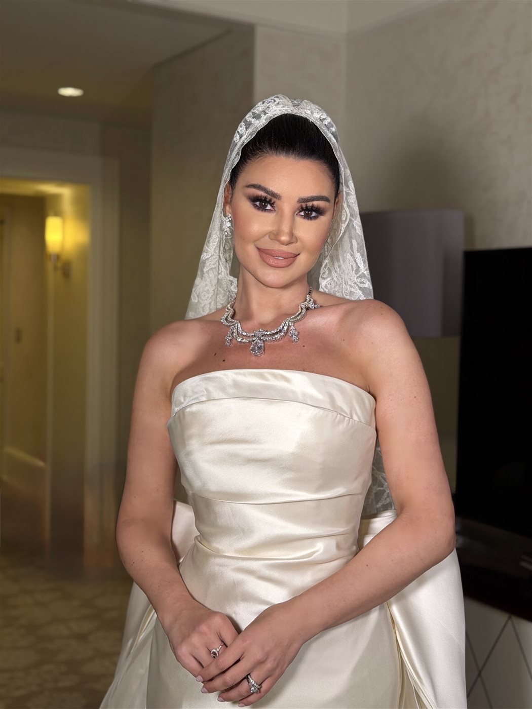 وأشار ان لوك حفل زفافها يختلف تماما عن لوك جلسة تصوير عقد قرانها الذي تميز بالألوان الصاخبة التي عكست ملامحها بشكل واضح وجذاب، مؤكد انها تحب وتنجذب أكثر للوك الصاخب ولكن في حفل زفافها فضلت ان تظهر بملسات من المكياج الهادئ الجذاب.