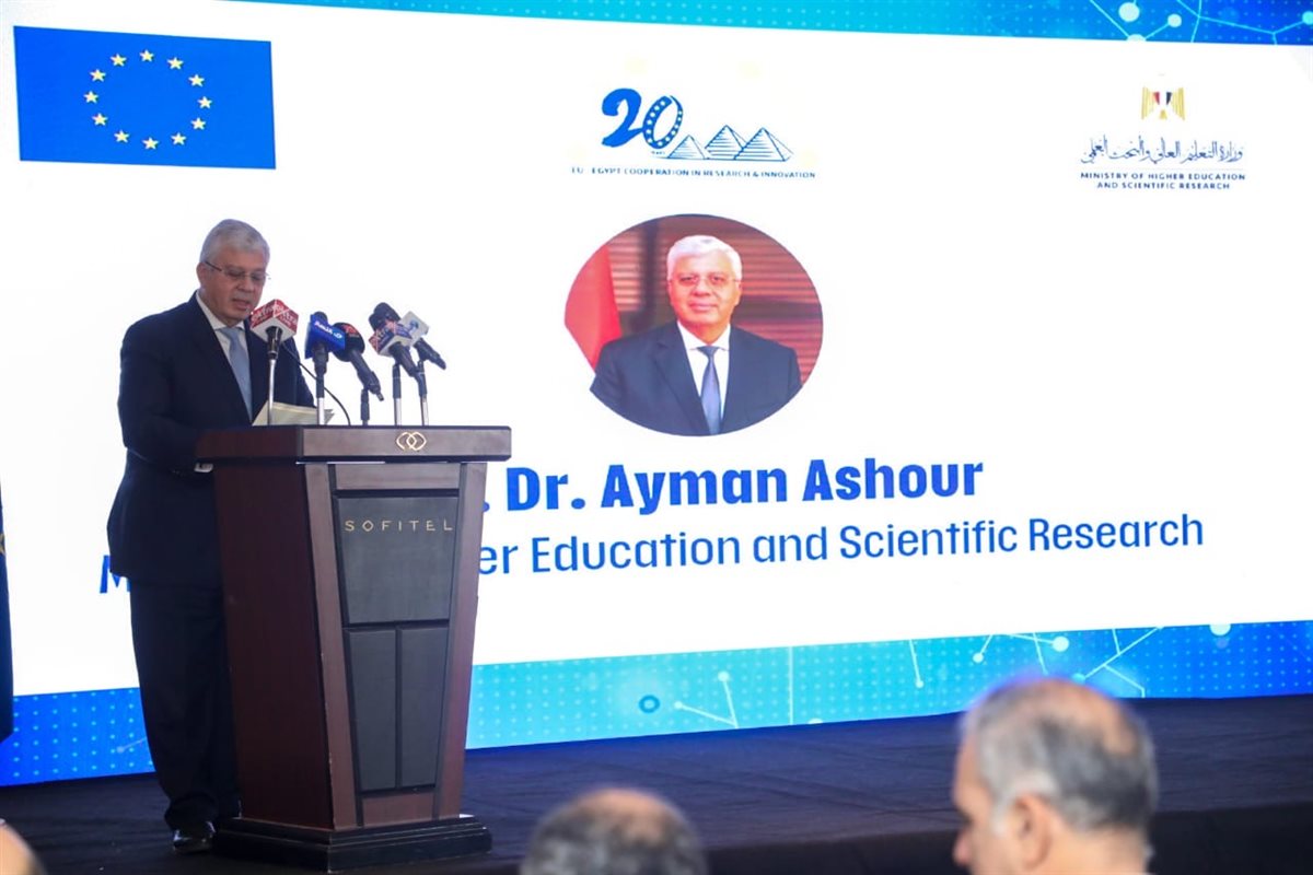 ومن جهته أكد الدكتور أيمن عاشور  وزير التعليم العالي والبحث العلمي، أن حضور هذا الجمع من الخبراء والباحثين وصنّاع السياسات من مصر والاتحاد الأوروبي يعكس الاهتمام الكبير بدعم منظومة البحث والابتكار وتعزيز التعاون العلمي بين الجانبين، في إطار شراكة راسخة وممتدة.