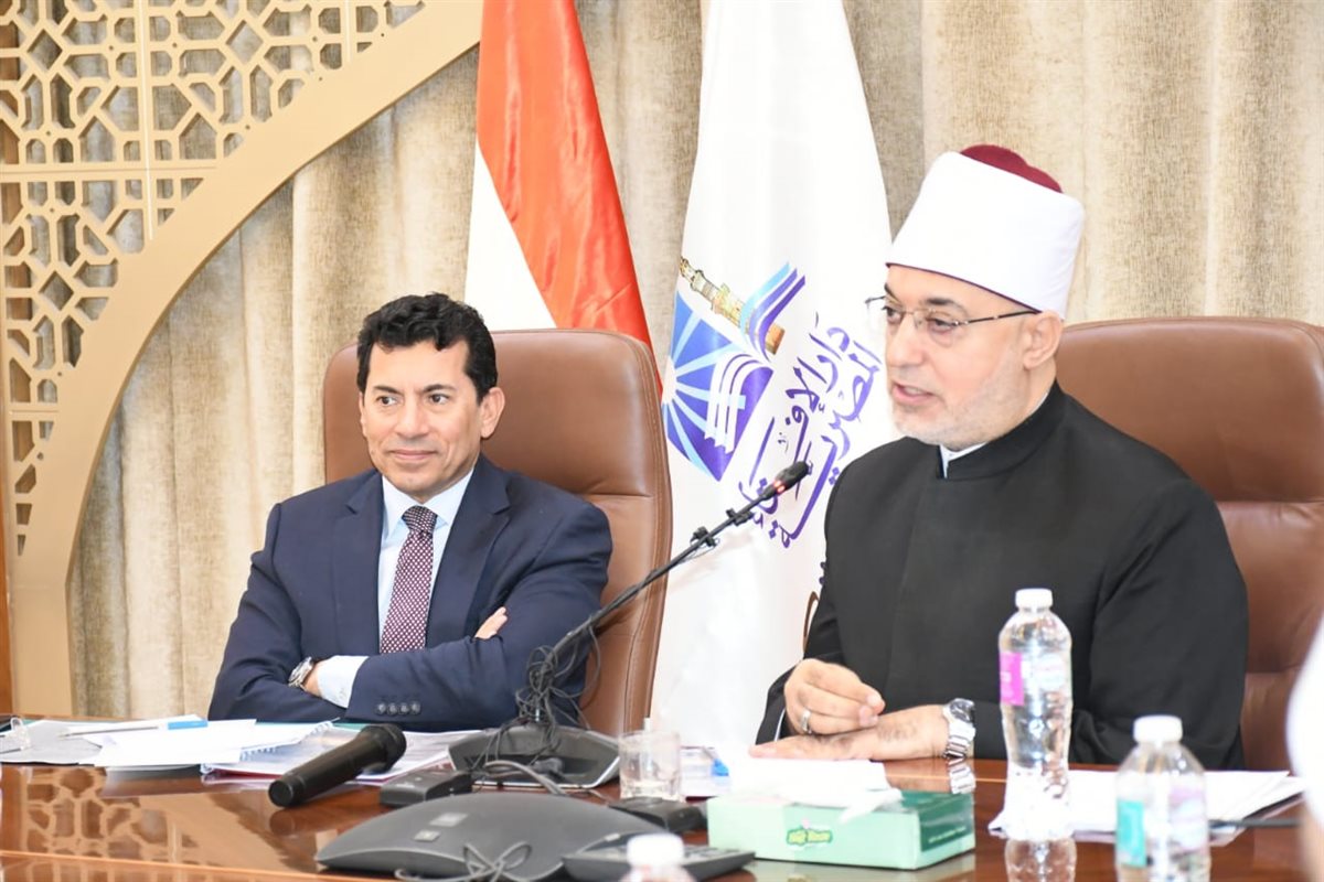 التقى الدكتور أشرف صبحي، وزير الشباب والرياضة، فضيلة الاستاذ الدكتور نظير محمد عياد، مفتي الجمهورية، لبحث أوجه تعزيز التعاون المشترك بين وزارة الشباب والرياضة ودار الإفتاء المصرية فيما يتعلق بقضايا الشباب وترسيخ الوعي ومواجهة الظواهر المجتمعية السلبية.