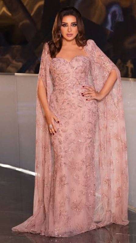 وبدت أنغام بإطلالة ساحرة، مزجت بين الرقي والاناقة في آن واحد، مرتدية فستان طويل مجسم، مطرز بالكامل، صمم من قماش ناعم باللون الوردي.