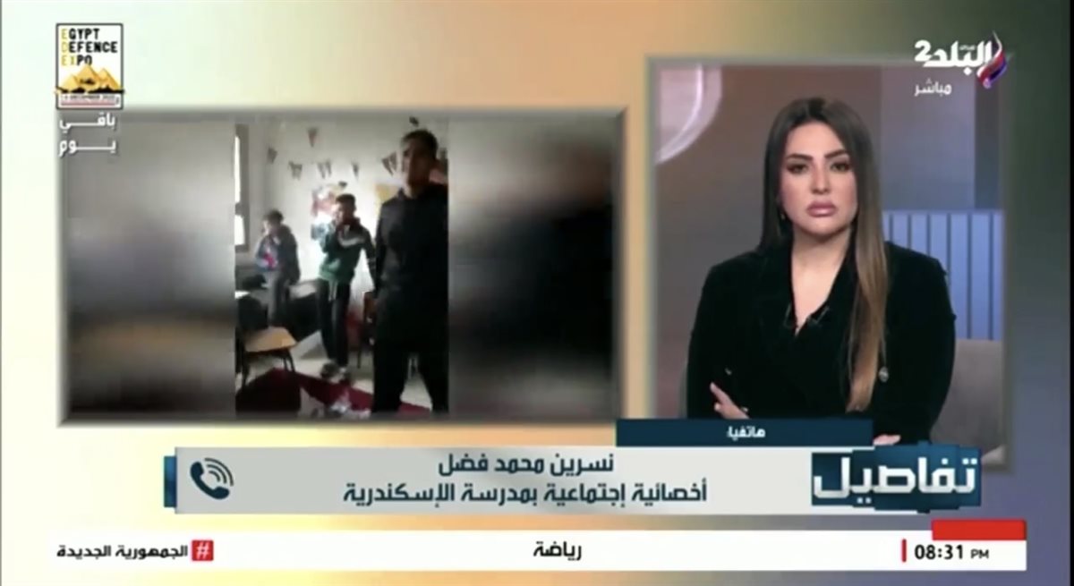 كشفت نسرين محمد فضل، الأخصائية النفسية بمدرسة في الإسكندرية، تفاصيل مثيرة حول حادث الفيديو الذي أثار جدلاً واسعاً في الأيام الأخيرة، وذلك في مداخلة هاتفية مع الإعلامية نهال طايل ببرنامج تفاصيل .