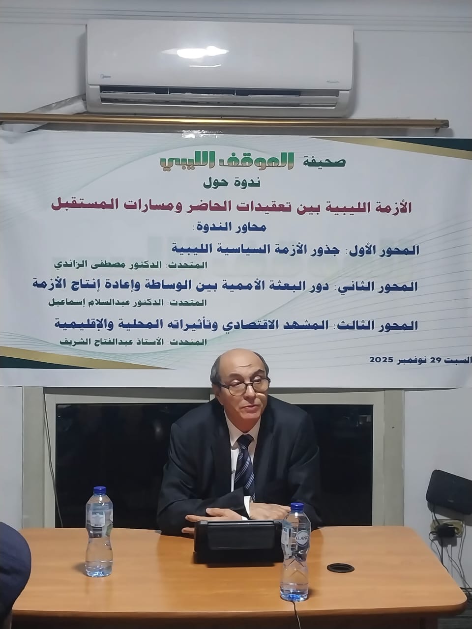وقدّم الدكتور عبد الفتاح الشريف قراءة في الوضع الاقتصادي الليبي، مؤكدًا أن ليبيا اليوم تمثل نموذجًا لـ"الدولة الفاشلة" التي تعجز عن فرض سيادتها وتقديم الخدمات الأساسية.