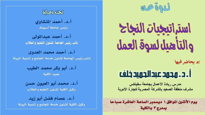 جامعة أسيوط تنظم ندوة استراتيجيات النجاح والتأهيل لسوق العمل