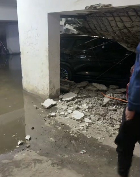من خلال المعاينة، تبين أن الانهيار أدى إلى تحطم 6 سيارات كانت متوقفة داخل الجراج، تعرضت لتلفيات متفاوتة بين المتوسطة والشديدة، نتيجة سقوط أجزاء الخرسانة عليها مباشرة.