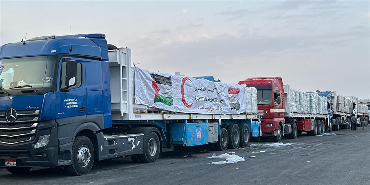 الهلال الأحمر المصري يدفع 9,500 طن مساعدات إنسانية وشتوية لـ غزة
