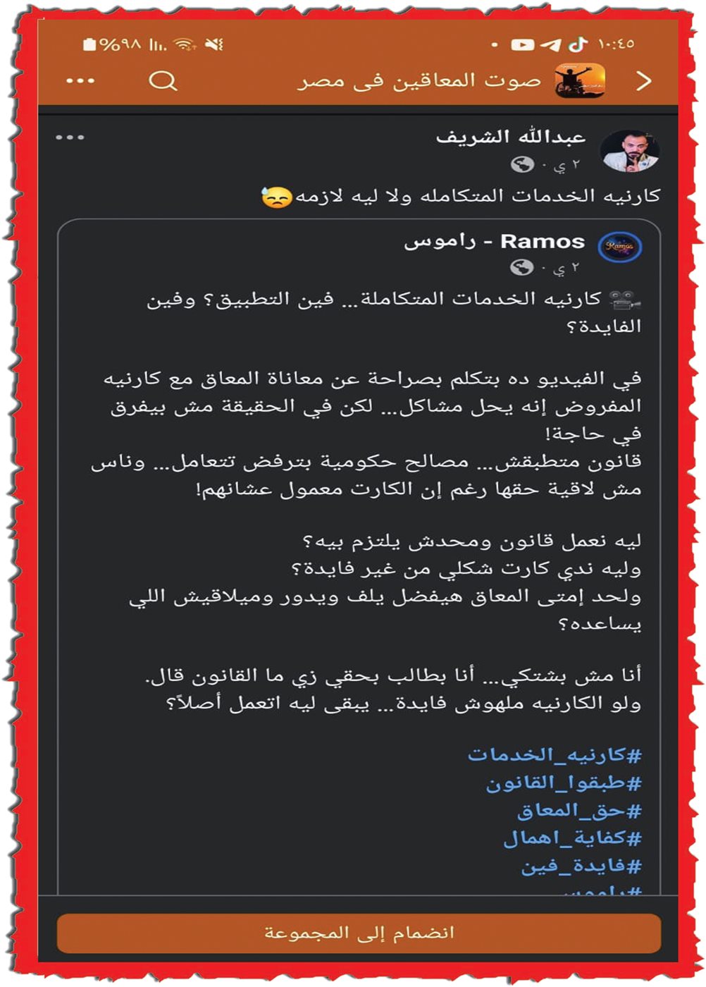 يقول إنه يشعر أحياناً بأن المؤسسات تُعامله كأنه غير موجود إلا إذا أحضر معه شخصاً مبصراً، وأضاف قائلاً: «أنا بنى آدم… ليه لازم حد يمشى معايا علشان أعمل ورقة فى مصلحة حكومية».