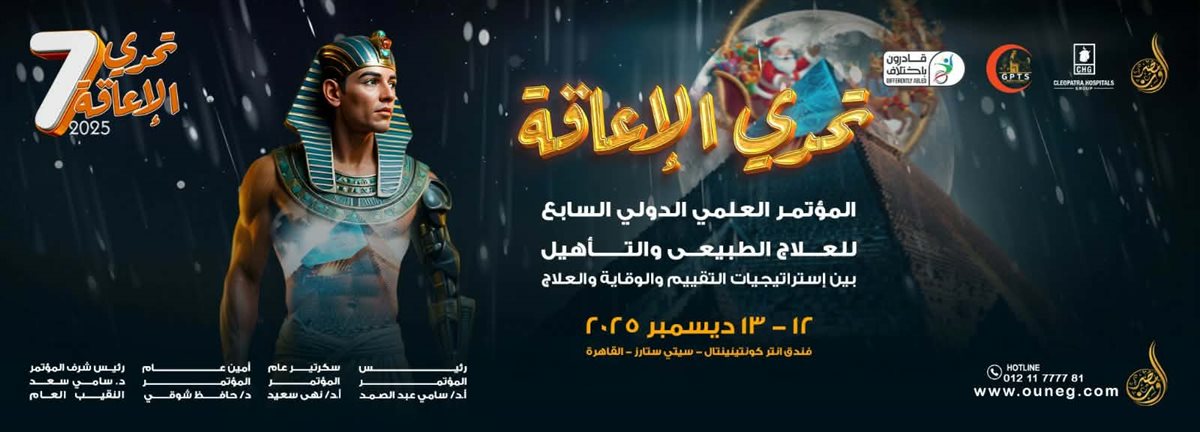 تطلق النقابة العامة للعلاج الطبيعي مؤتمر "تحدي الإعاقة" في نسخته السابعة يومي 12 و13 ديسمبر 2025 بفندق إنتركونتيننتال سيتي ستارز في مدينة نصر، تحت رعاية ثلاثة وزراء: الأستاذ الدكتور خالد عبد الغفار نائب رئيس الوزراء للتنمية البشرية ووزير الصحة والسكان، والأستاذ الدكتور محمد إيمن عاشور وزير التعليم العالي والبحث العلمي، والدكتورة مايا مرسي وزيرة التضامن الاجتماعي.