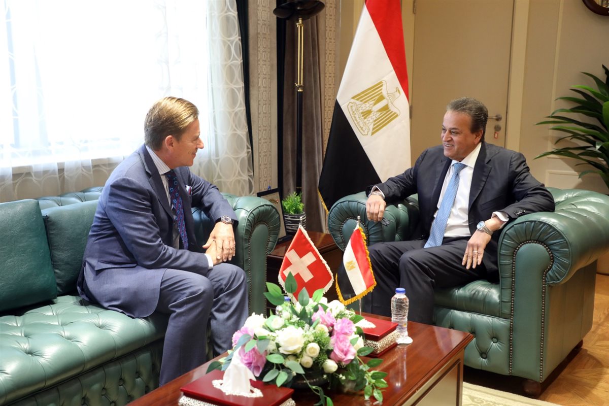 وزير الصحة يستقبل السفير السويسري ويتلقى دعوة رسمية لحضور المنتدى الاقتصادي السويسري-المصري