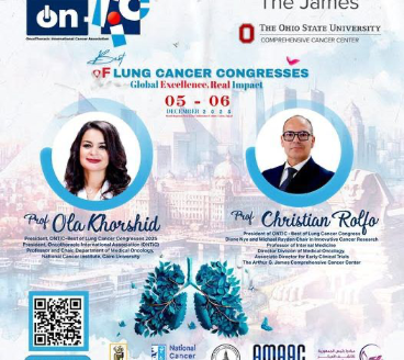بحضور 42 عالم وطبيب من دول العالم وبرعاية وحضور وزارتي الصحة والسكان والتعليم العالي تستضيف القاهرة فعاليات المؤتمر الدولي لسرطان الرئة والصدر الذي تقيمه الرابطة الدولية ONTIC لمكافحه و علاج الأورام وبالتعاون مع جامعة ولاية أوهايو بالولايات المتحدة الأمريكية والمعهد القومي للأورام في الفترة من 5–6 ديسمبر 2025 – ب فندق هيلتون جراند نايل بالقاهرة الساعة الخامسة مساء يوم الجمعة القادم .