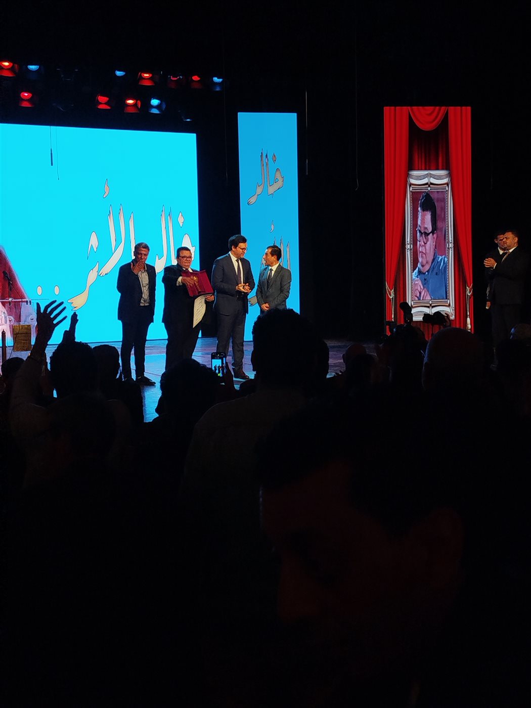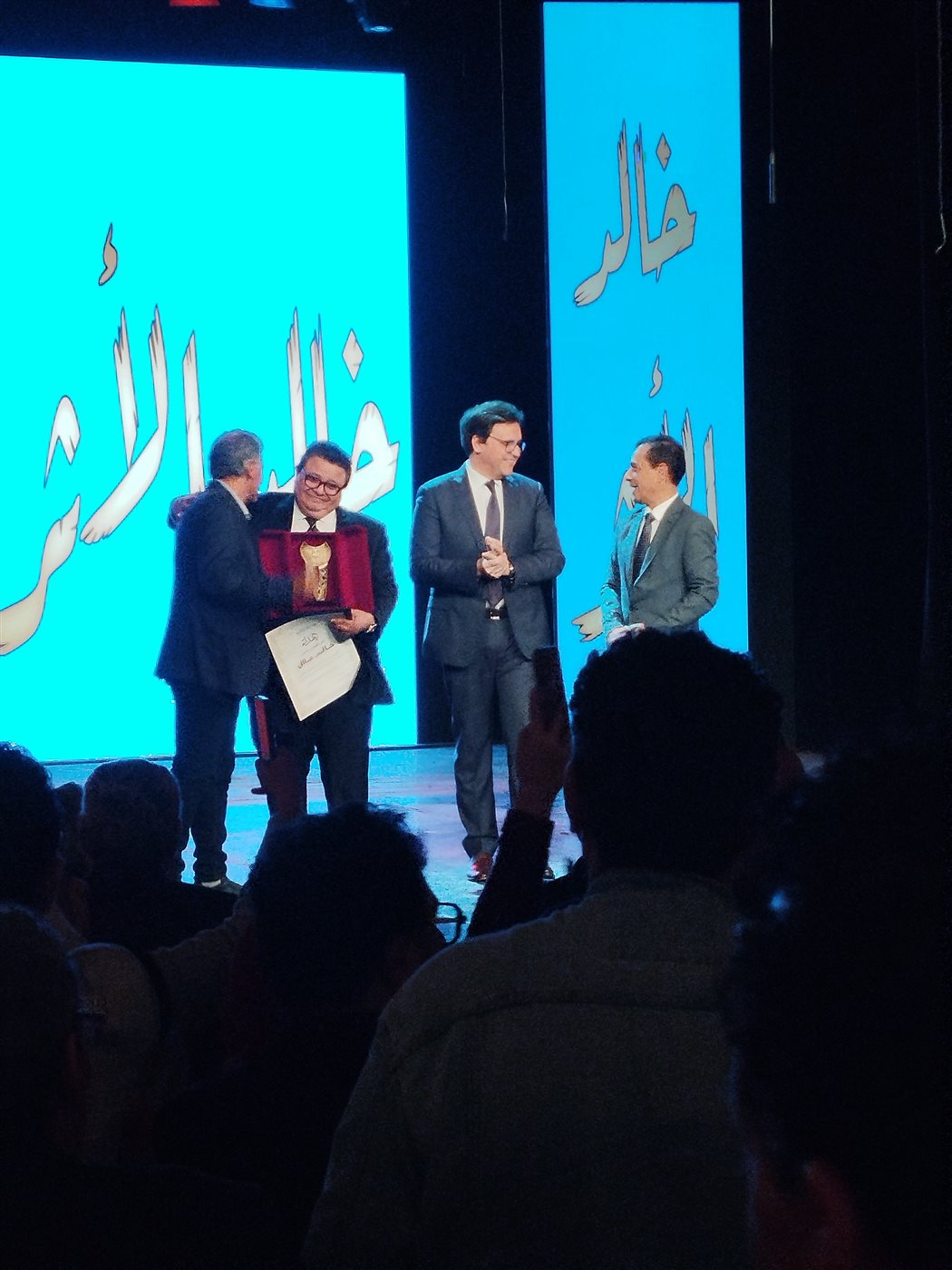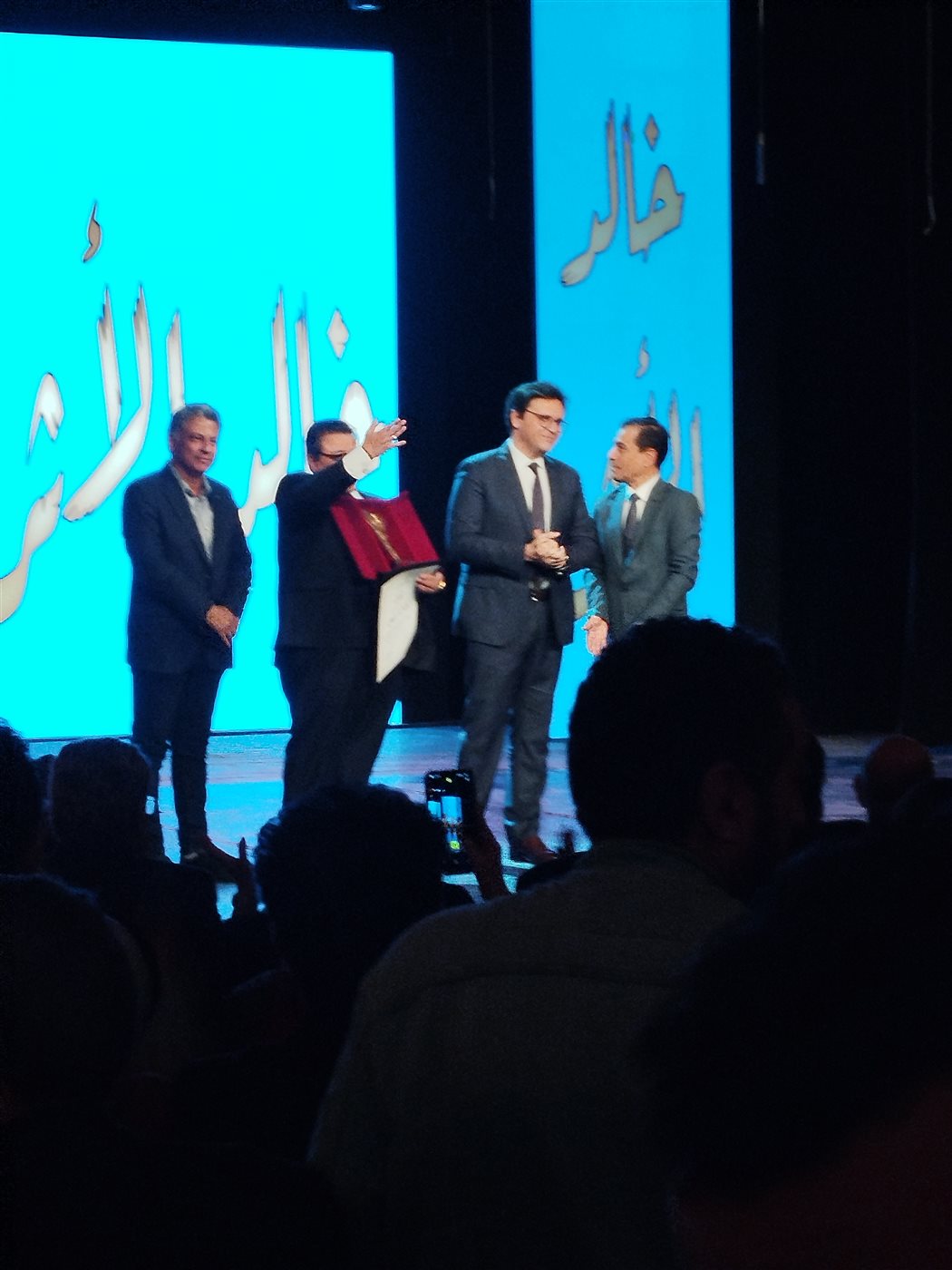 كرم منذ قليل، الدكتور أحمد فؤاد هنو وزير الثقافة، المخرج خالد جلال عضو مجلس الشيوخ، والرئيس السابق لقطاع المسرح بوزارة الثقافة، وذلك خلال الاحتفالية التي يقيمها قطاع المسرح على خشبة المسرح القومي بالعتبة.