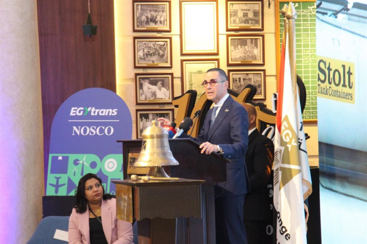 بحضور الفريق كامل الوزير نائب رئيس مجلس الوزراء وزير الصناعة والنقل، شارك المهندس حسن الخطيب وزير الاستثمار والتجارة الخارجية بفعاليات قرع جرس بدء جلسة التداول بالبورصة المصرية بمناسبة إتمام عملية استحواذ شركة "المصرية للخدمات النقل والتجارة إيجيترانس" على شركة "الوطنية لخدمات النقل وأعالي البحار – نوسكو".