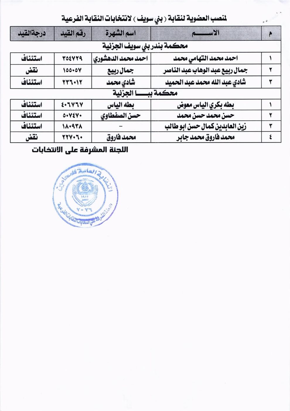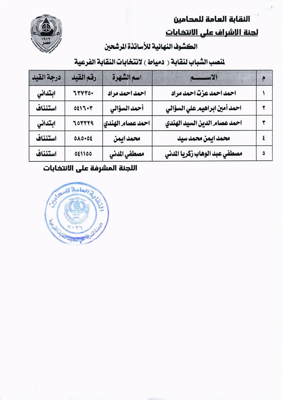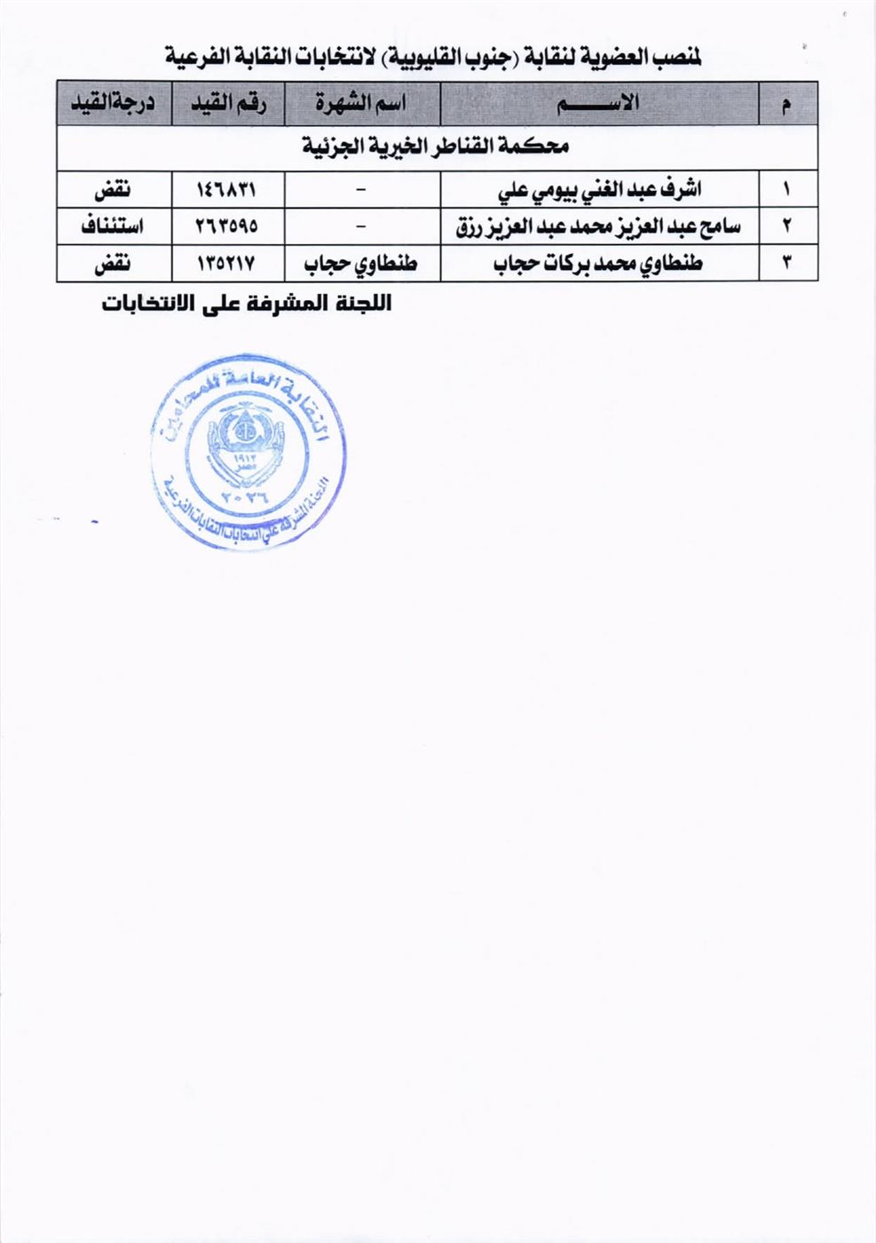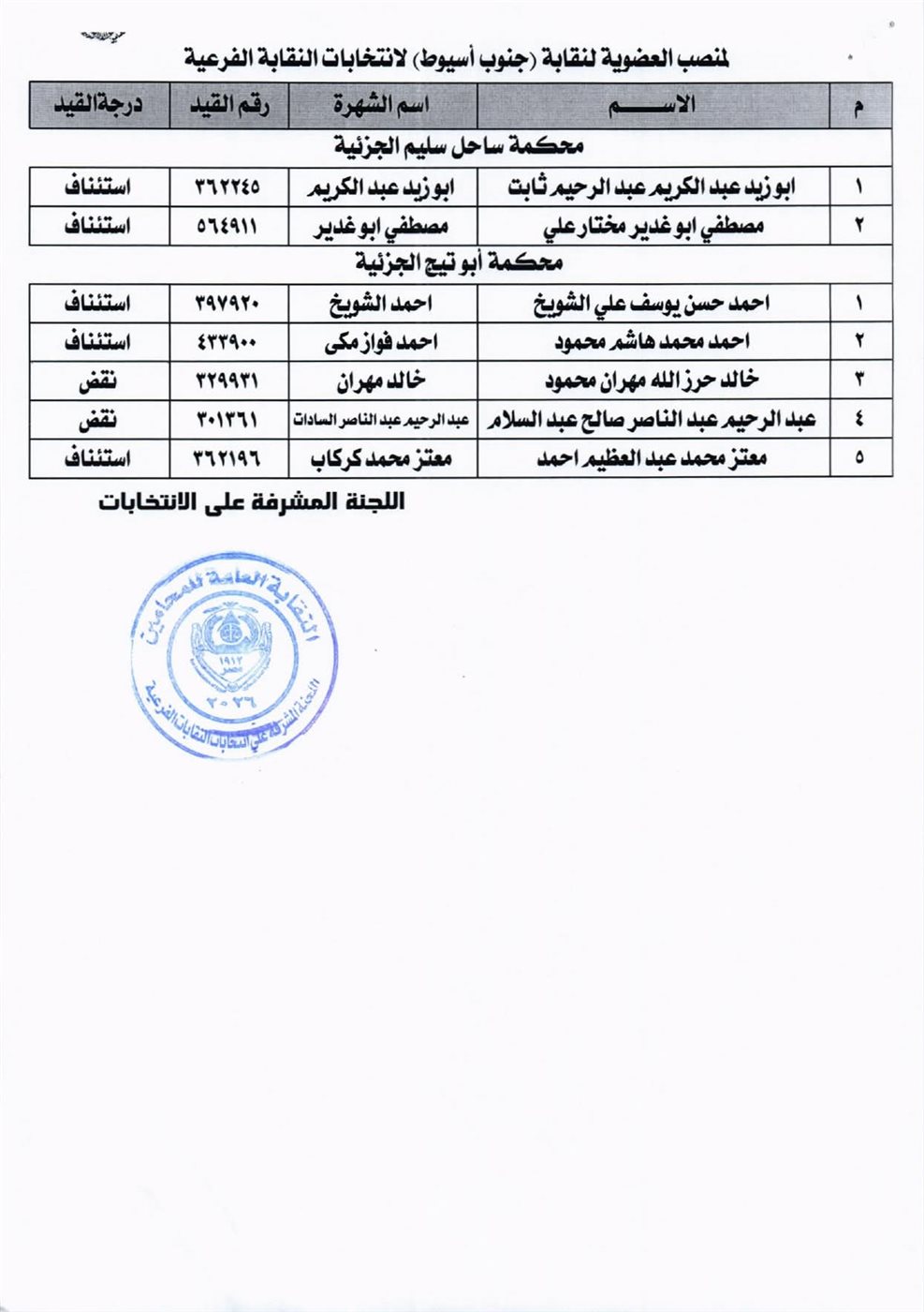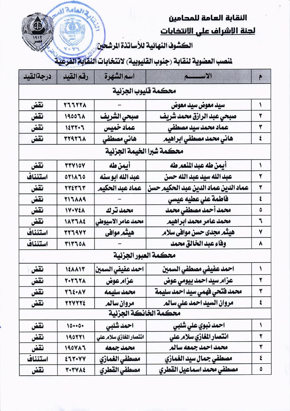 وبالإشارة الى ما تم نشرة سابقاً على الموقع الرسمي للنقابة العامة للمحامين من بيانات وكذا جريدتي الاخبار والجمهورية بالعدد الصادر بتاريخ 11/11/2025 والمتضمن جدول الانتخابات للنقابات الفرعية للمرحلة الأولى والتي تشمل النقابات الاتية: -