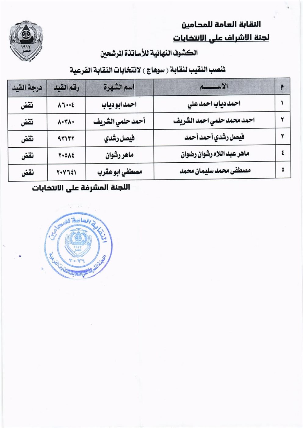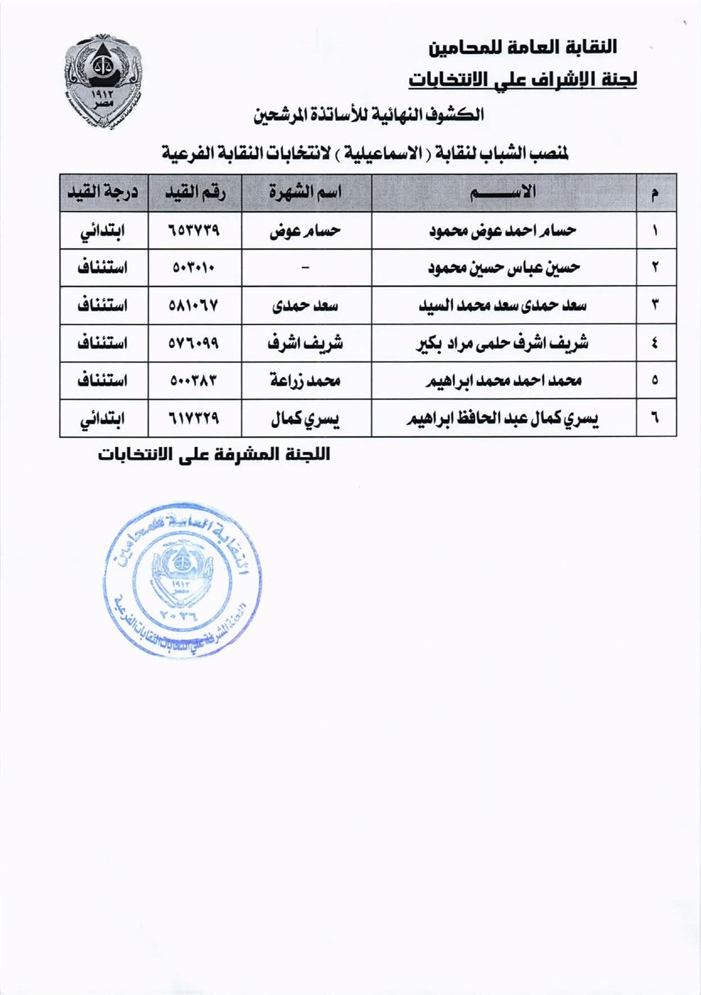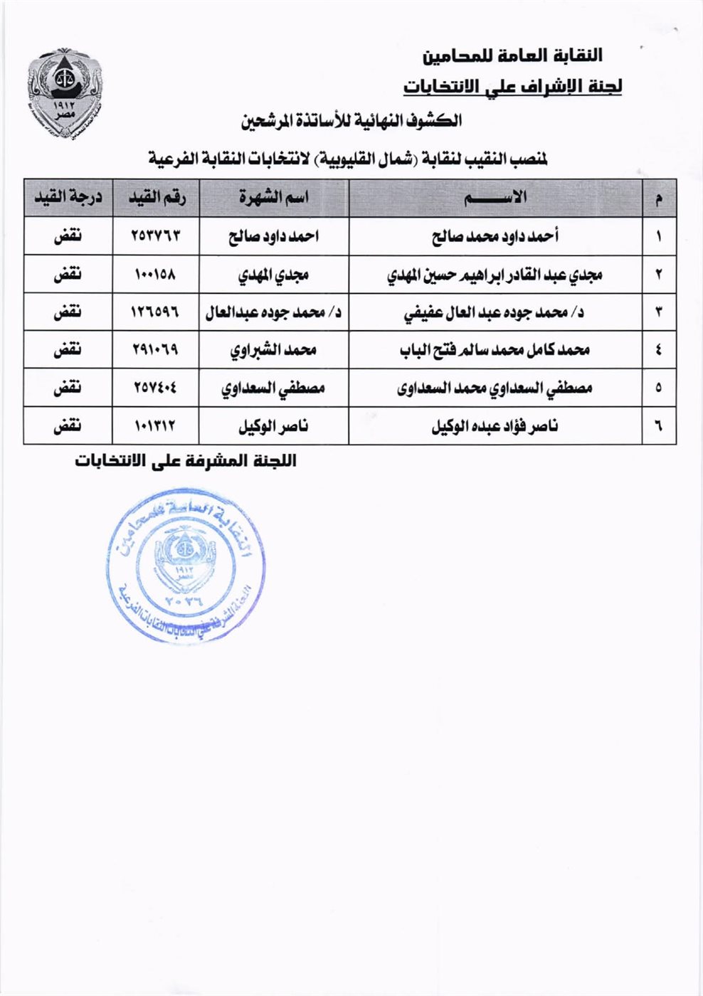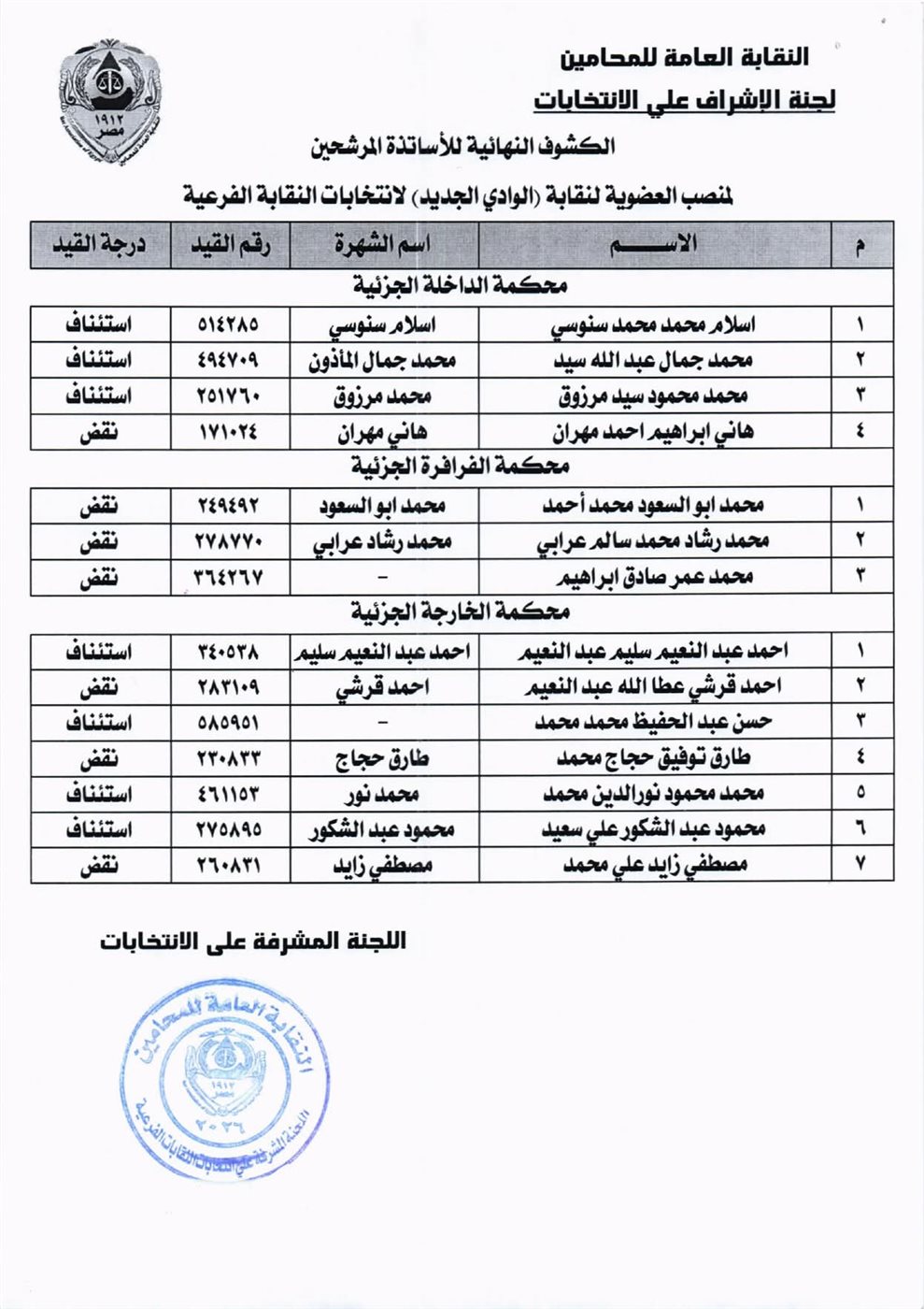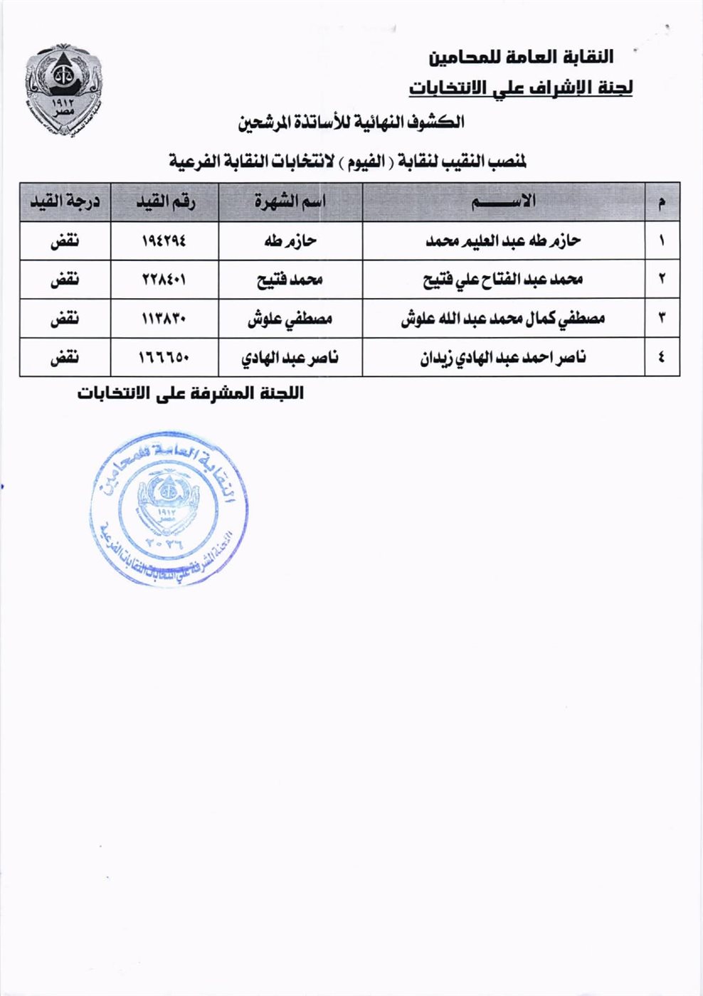 وبذلك ووفقا للحصر العددي النهائي للسادة المرشحين للمرحلة الأولى فقد تم اعداد الكشوف النهائية بأسماء السادة المرشحين وفقا للمرفق الاتى: -