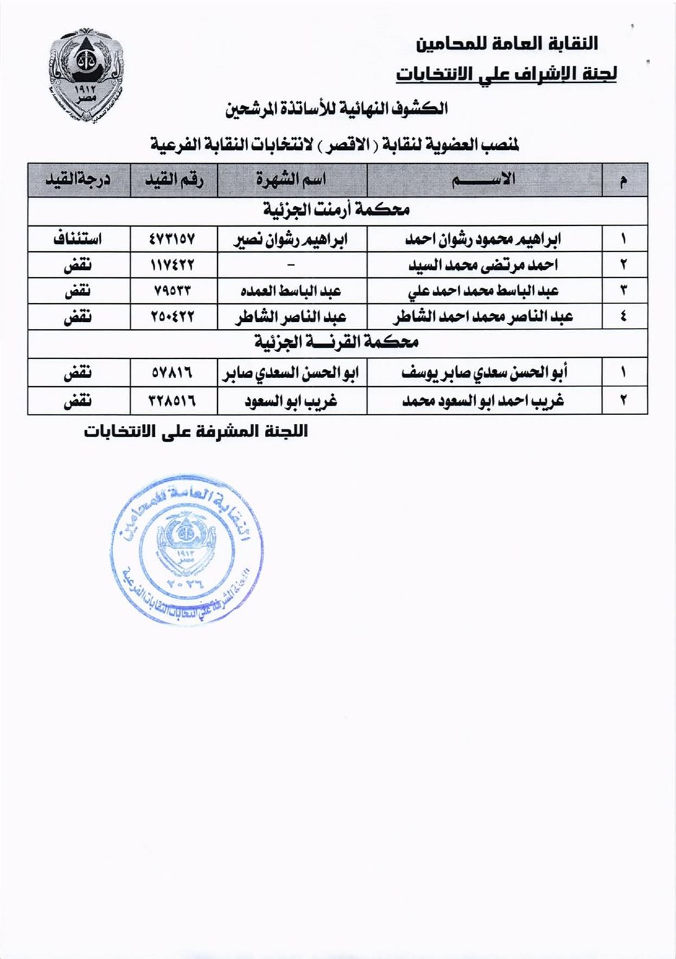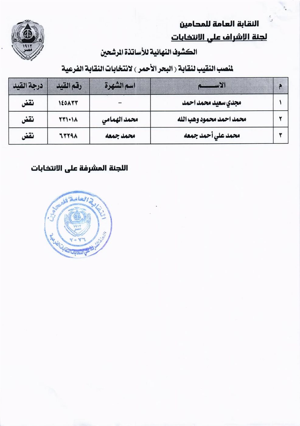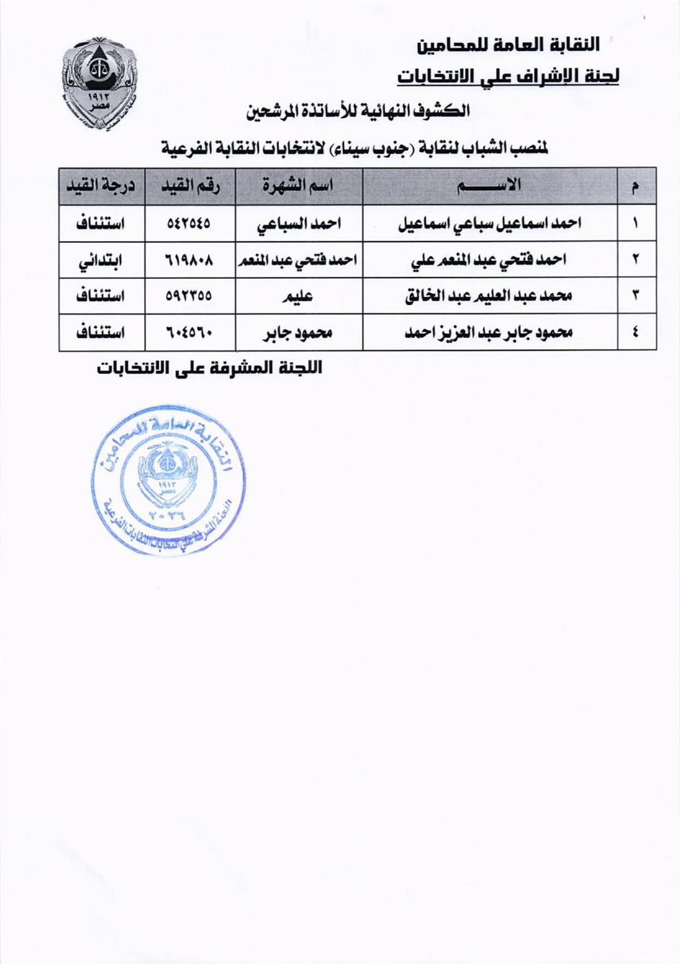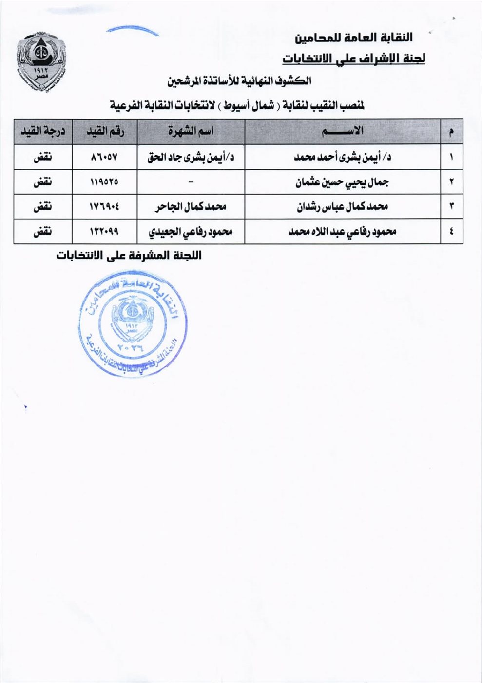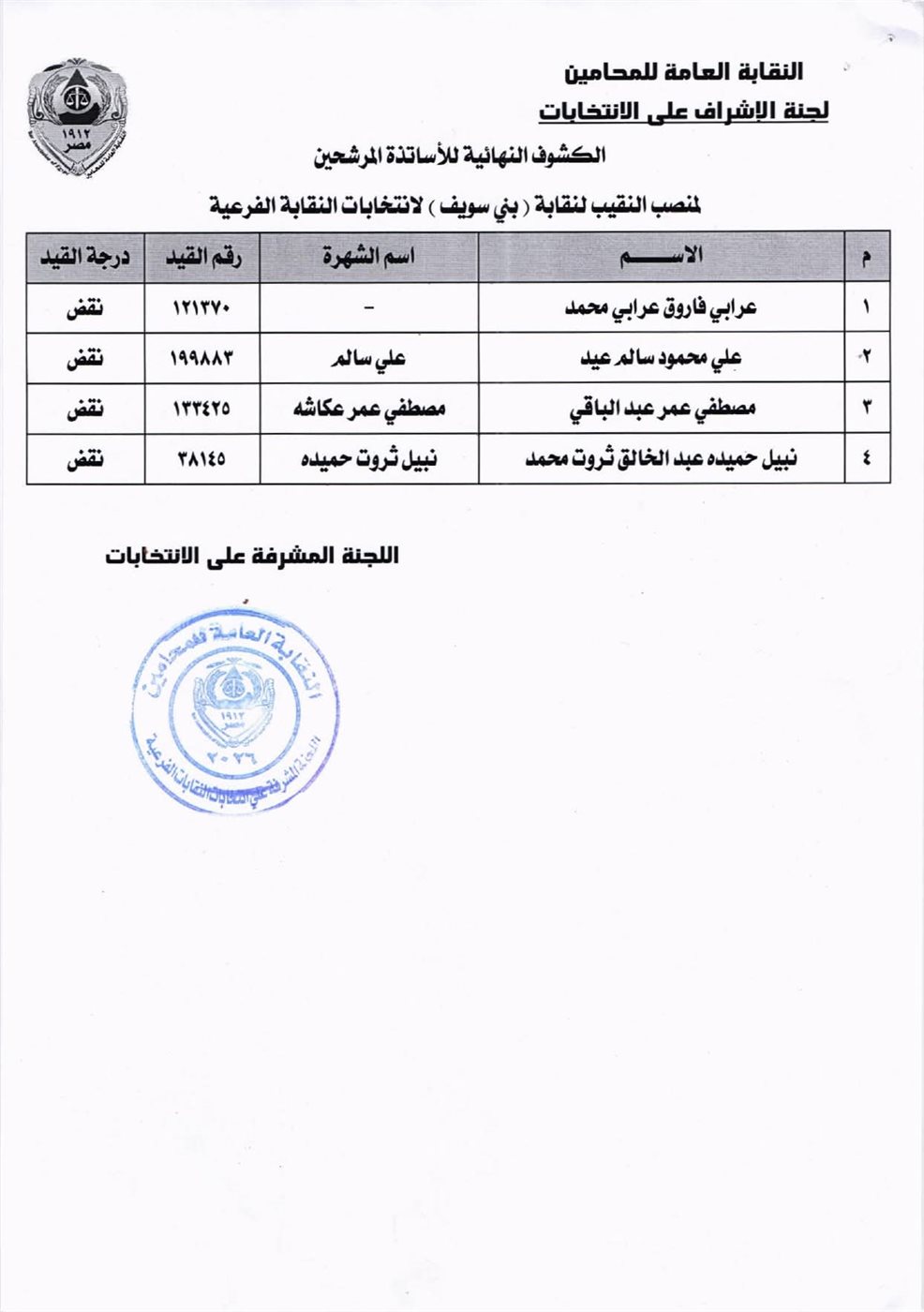 وبذلك ووفقا للحصر العددي النهائي للسادة المرشحين للمرحلة الأولى فقد تم اعداد الكشوف النهائية بأسماء السادة المرشحين وفقا للمرفق الاتى: -