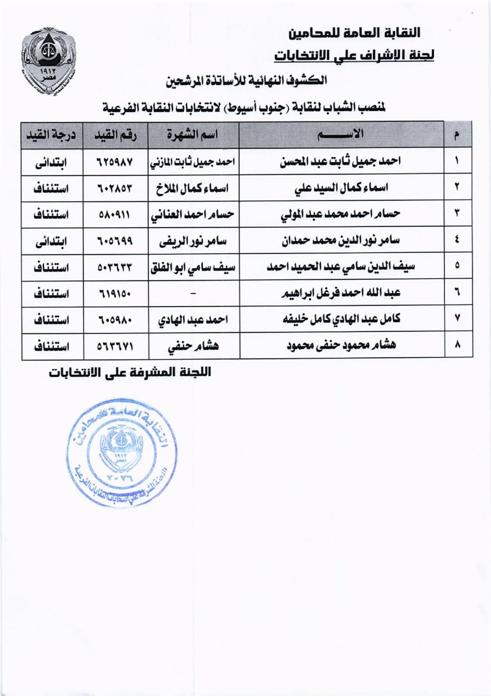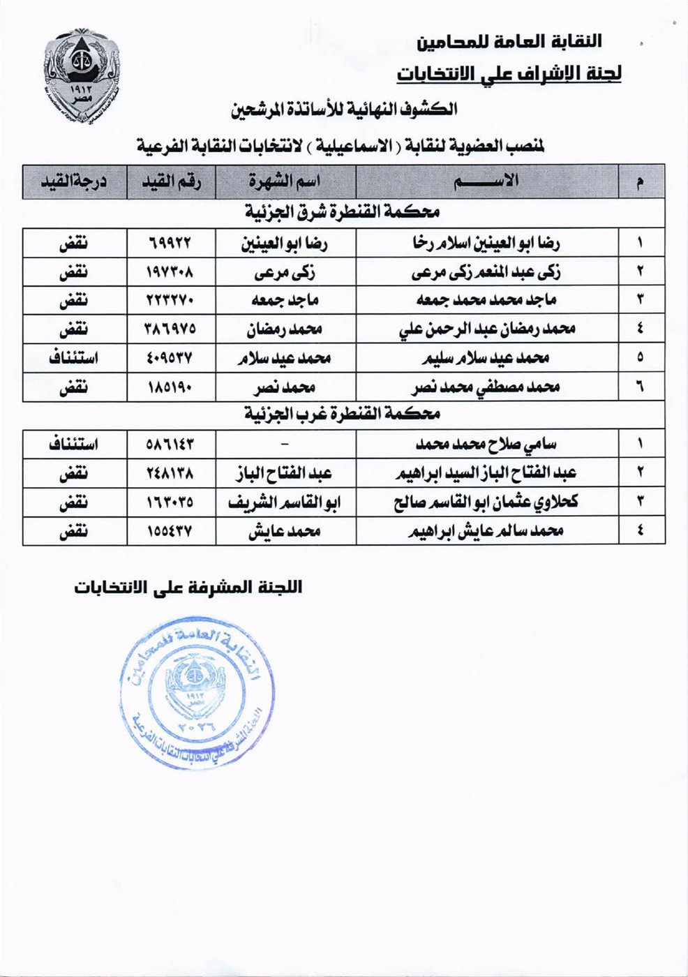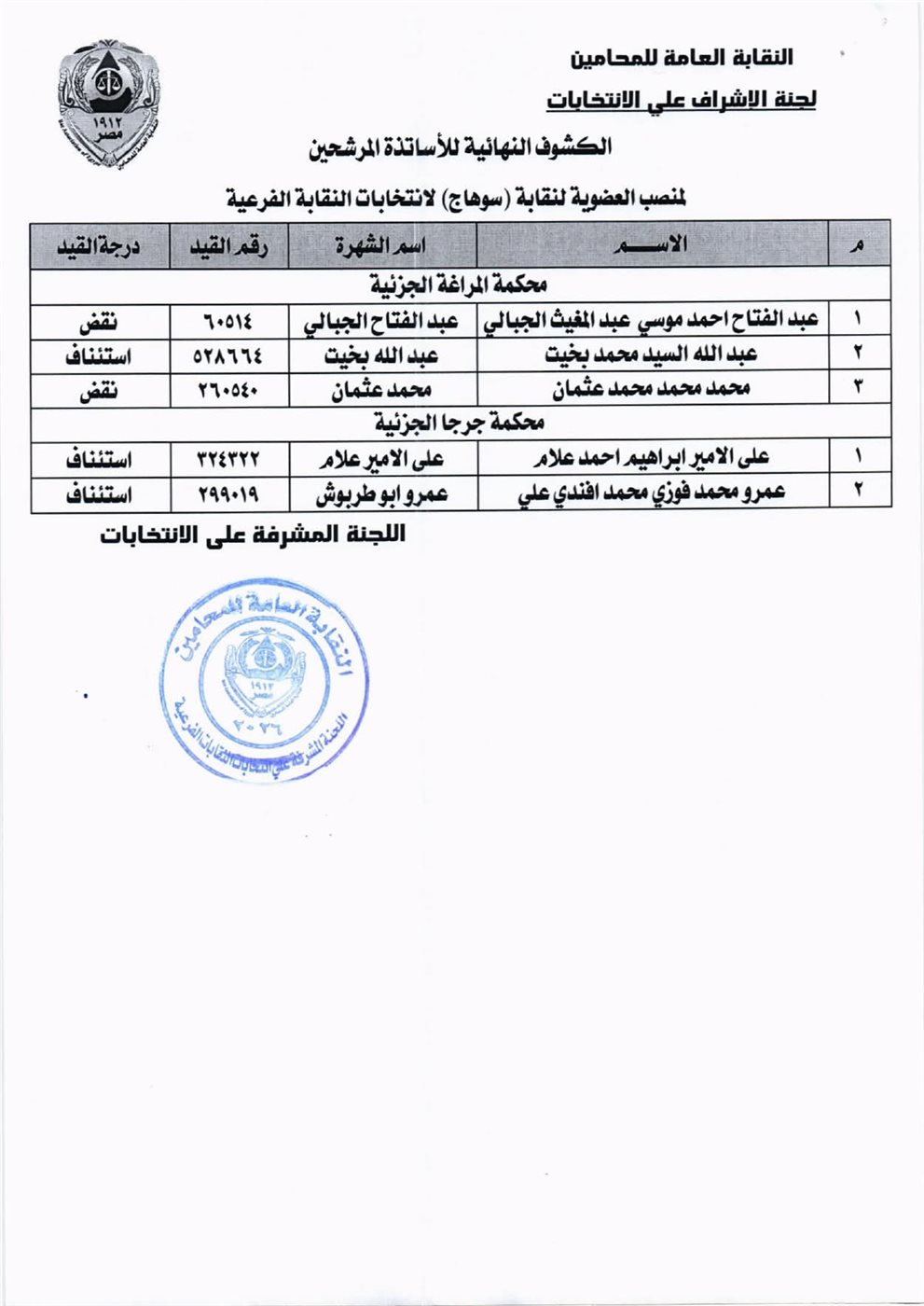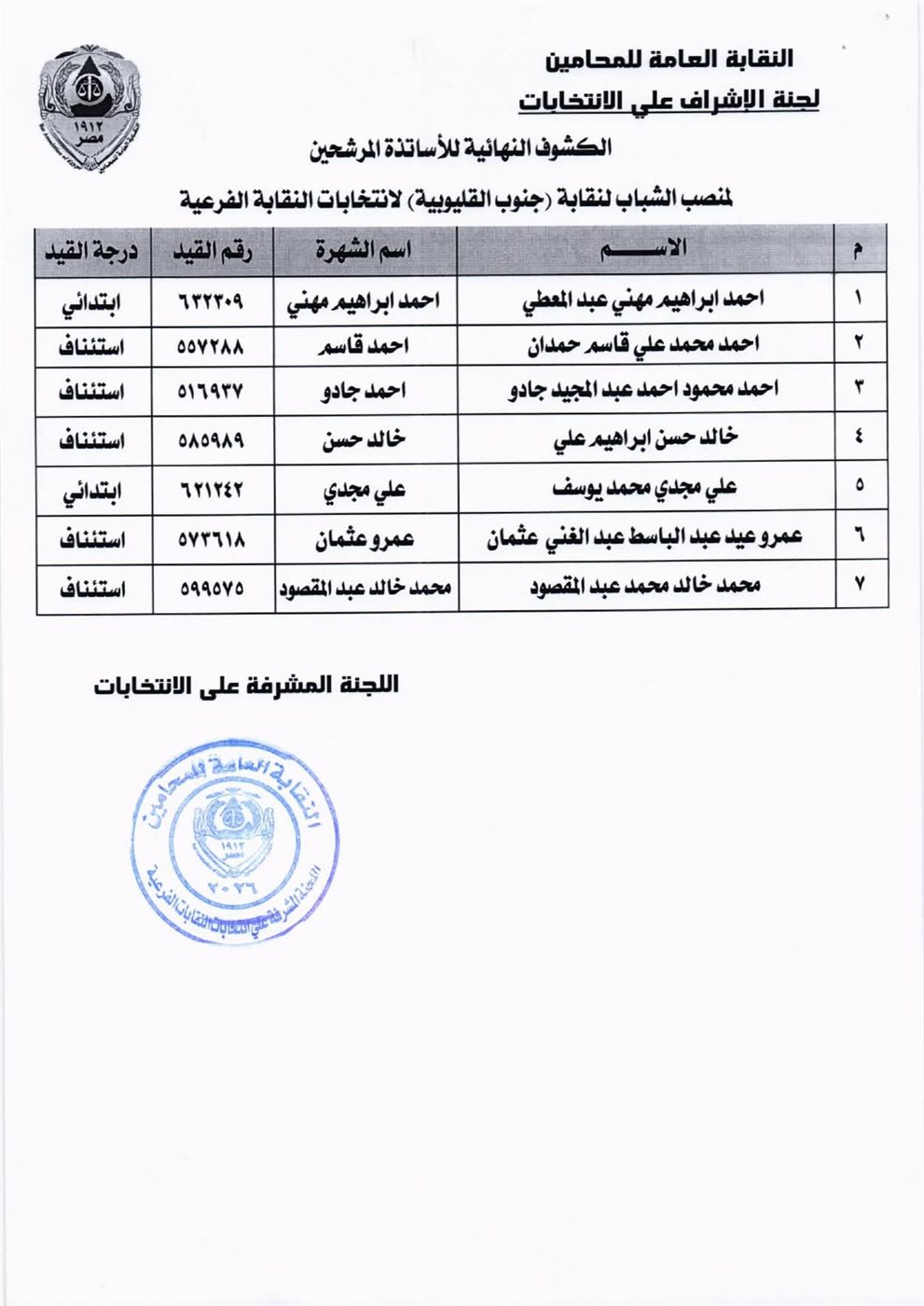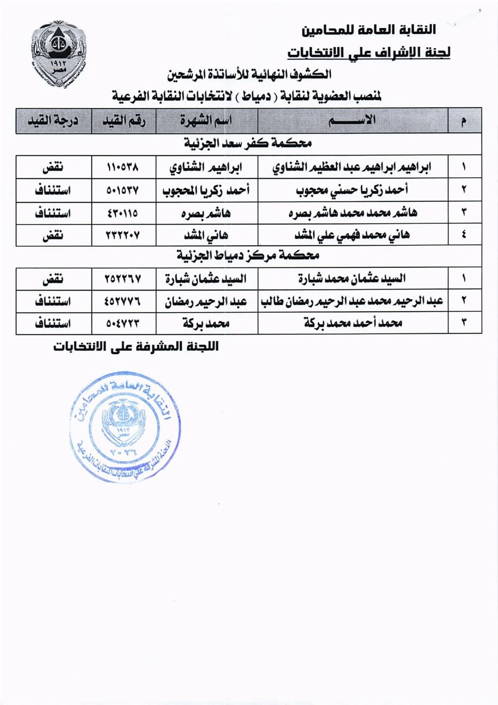 وبذلك ووفقا للحصر العددي النهائي للسادة المرشحين للمرحلة الأولى فقد تم اعداد الكشوف النهائية بأسماء السادة المرشحين وفقا للمرفق الاتى: -