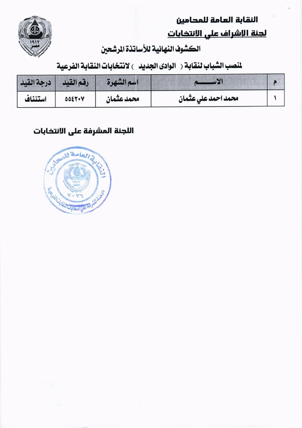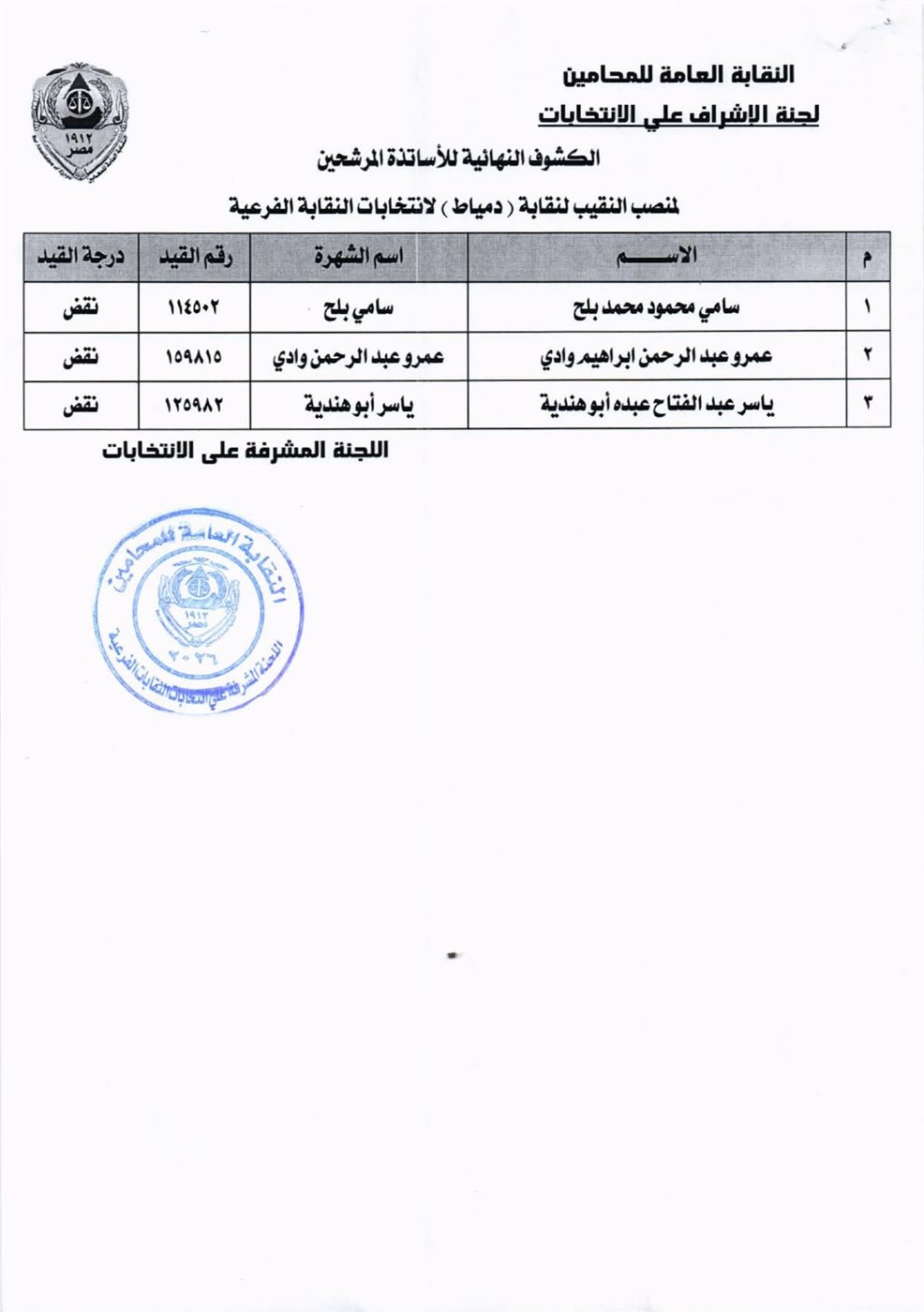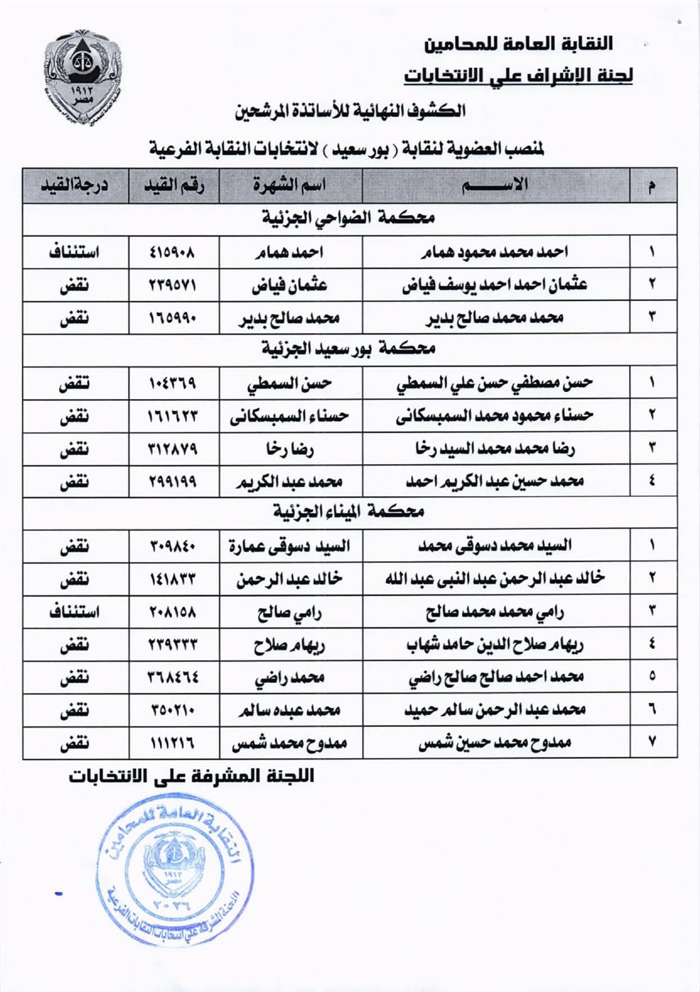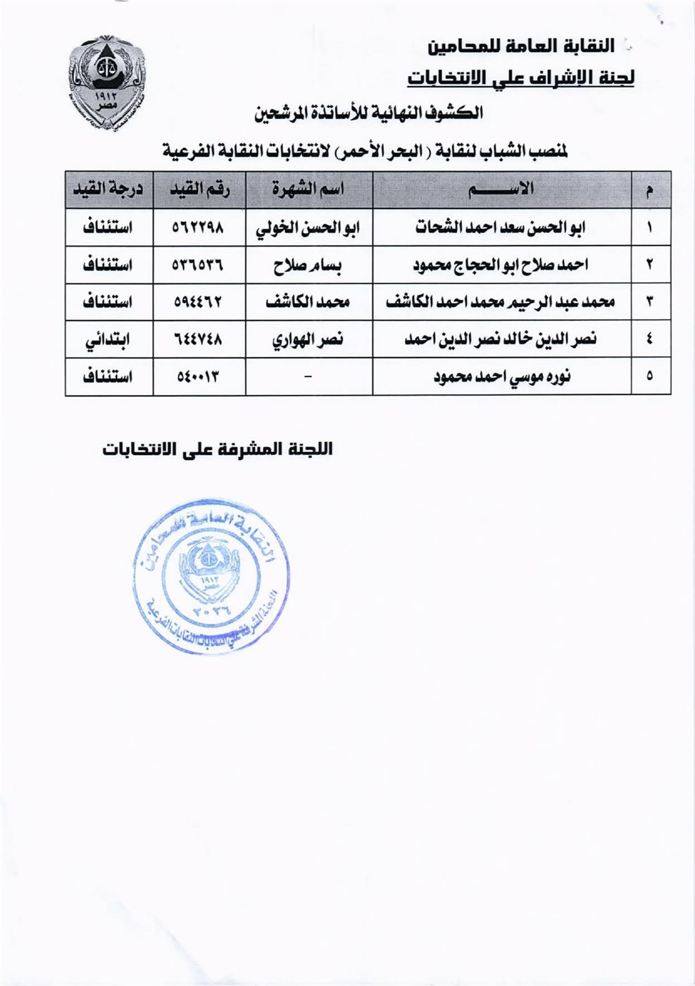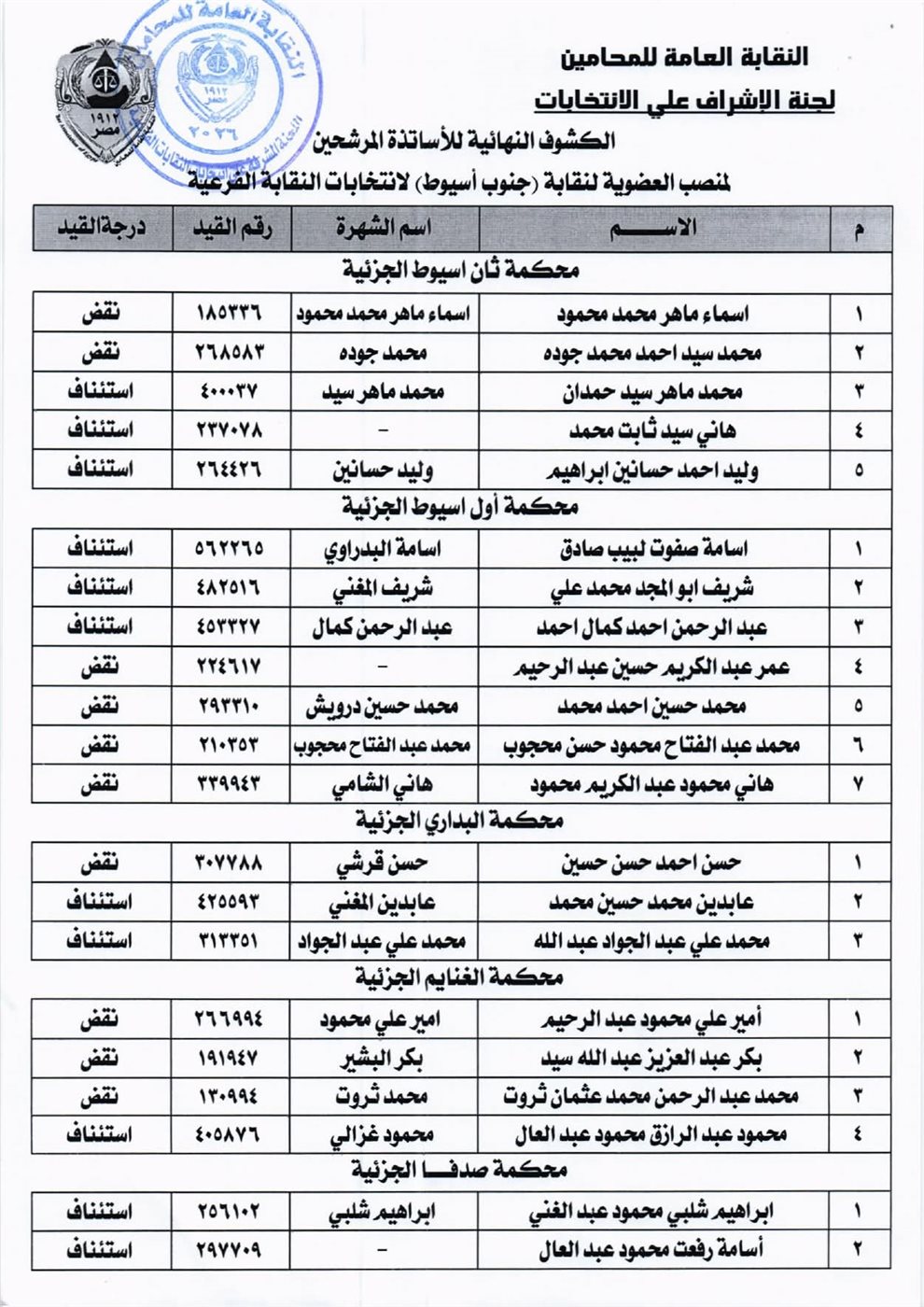 وبذلك ووفقا للحصر العددي النهائي للسادة المرشحين للمرحلة الأولى فقد تم اعداد الكشوف النهائية بأسماء السادة المرشحين وفقا للمرفق الاتى: -