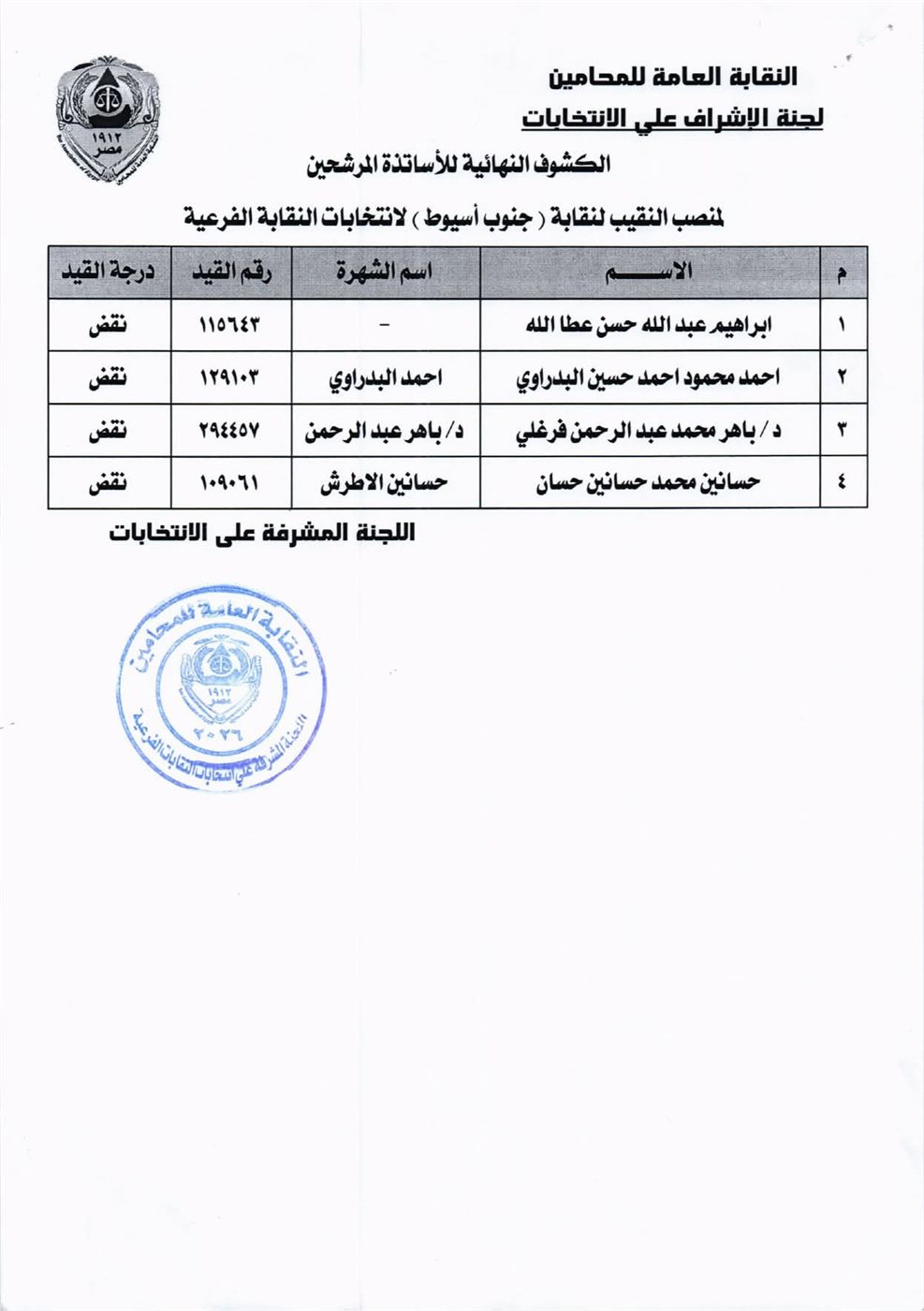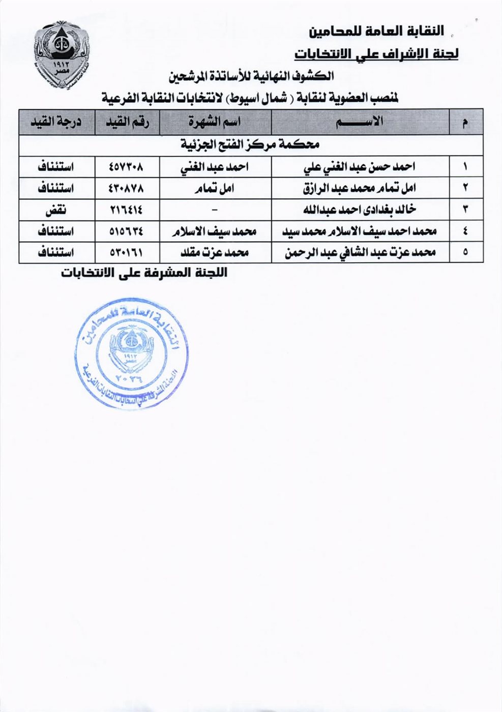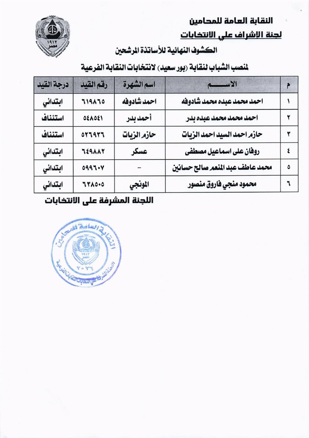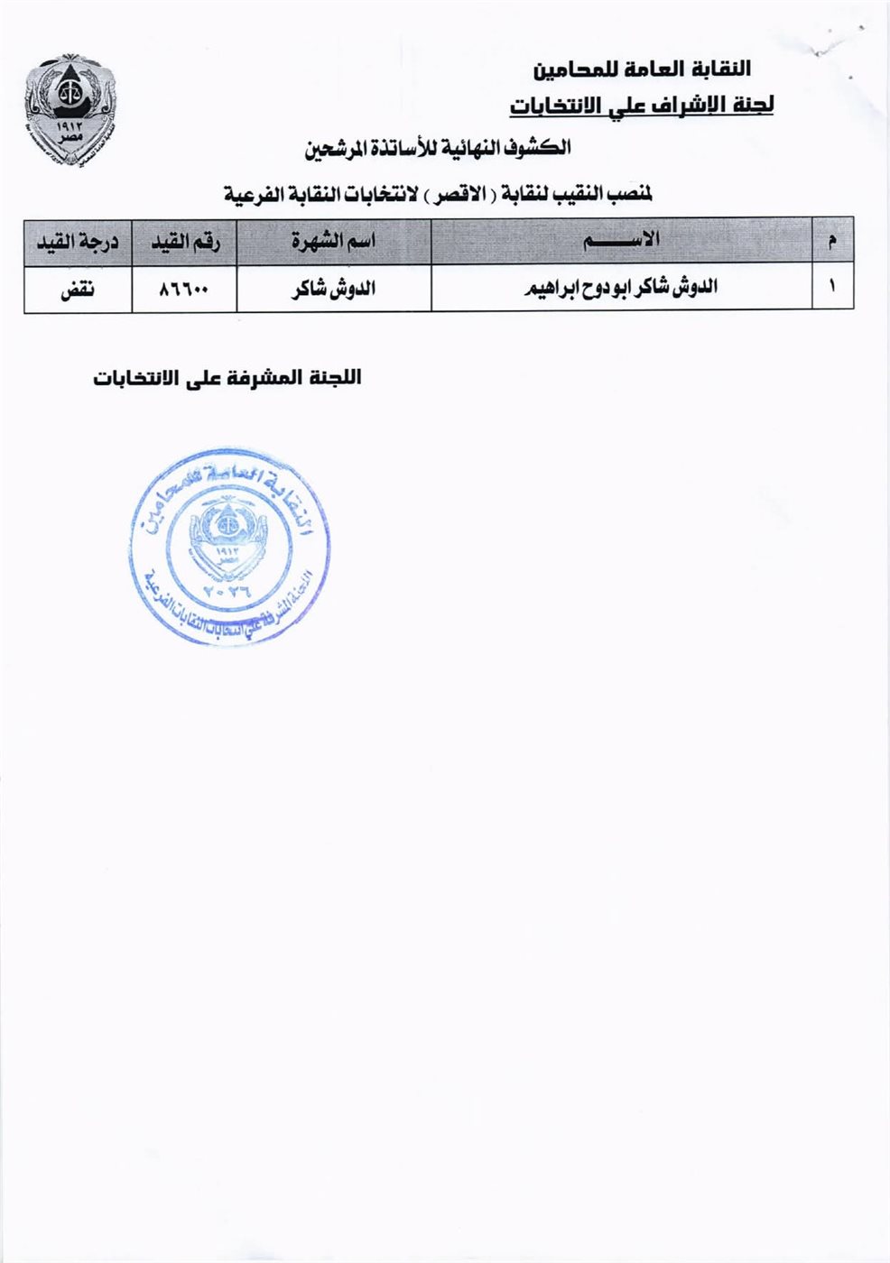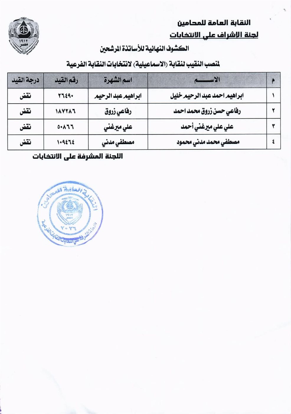 وبذلك ووفقا للحصر العددي النهائي للسادة المرشحين للمرحلة الأولى فقد تم اعداد الكشوف النهائية بأسماء السادة المرشحين وفقا للمرفق الاتى: -