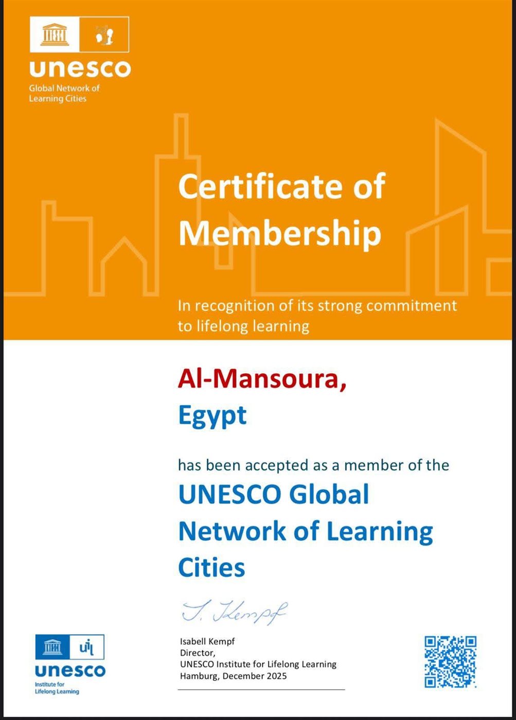 رئيس جامعة المنصورة يهنئ بالانضمام للشبكة العالمية لمدن التعلّم باليونسكو