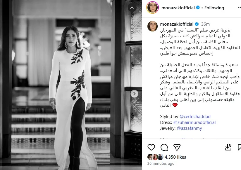 منى زكي تحتفي بعرض فيلم "الست" في مهرجان مراكش