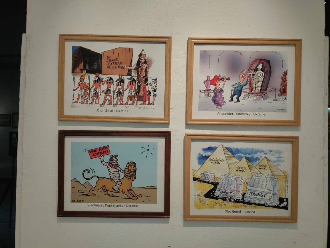 بدأت الفعاليات بعرض مميز لعرائس الماريونت، قدّمته الهيئة العامة لقصور الثقافة كإهداء للمناسبة، ليمنح الافتتاح روحًا استعراضية محببة أضفت دفئًا وإبداعًا على الأجواء، تلا ذلك جولة في قاعتي «نهضة مصر» و«إيزيس» حيث ضمّ المعرض أكثر من 150 عملًا فنيًا بمشاركة رسامين من 35 دولة، حيث توزّعت الأعمال بين محور يحتفي بالفنان الكبير أحمد طوغان عبر بورتريهات كاريكاتيرية خاصة، ومحور دولي يعكس احتفاء العالم بافتتاح المتحف المصري الكبير بوصفه حدثًا ثقافيًا عالميًا، وذلك في إطار مبادرة «فرحانين بالمتحف الكبير ولسه متاحف مصر كتير» التي أطلقتها وزارة الثقافة.