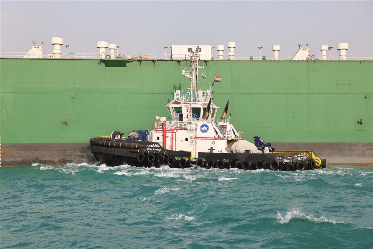 مقطورا بواسطة ٥ قاطرات بحرية :