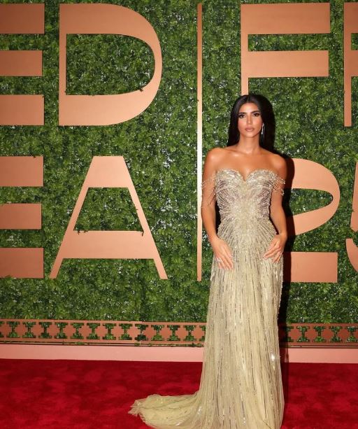 ونجحت ريم سامي في أختيار إطلالة تميز تواجدها على السجادة الحمراء، حيث ارتدت فستاناً مزيناً بالترتر الأخضر وأحجار اللؤلؤ عانق انحناءات جسمها بكل أناقة وأنوثة.