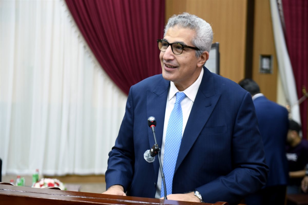 كما وجَّه خالص الشكر والتقدير إلى الدكتور أيمن عاشور، وزير التعليم العالي والبحث العلمي، على ما تبذله الوزارة من جهود جادة لتطوير منظومة التعليم العالي، ولا سيما ما يتعلق بتنفيذ الخطة الشاملة لتحديث دور لجان قطاعات التعليم الجامعي، واعتماد الأطر المرجعية الاسترشادية، وربطها بأهداف الاستراتيجية الوطنية للتعليم العالي والبحث العلمي، بما يسهم في الارتقاء بجودة البرامج الدراسية، وتحقيق التكامل بين المخرجات التعليمية واحتياجات التنمية وسوق العمل.